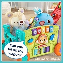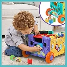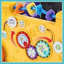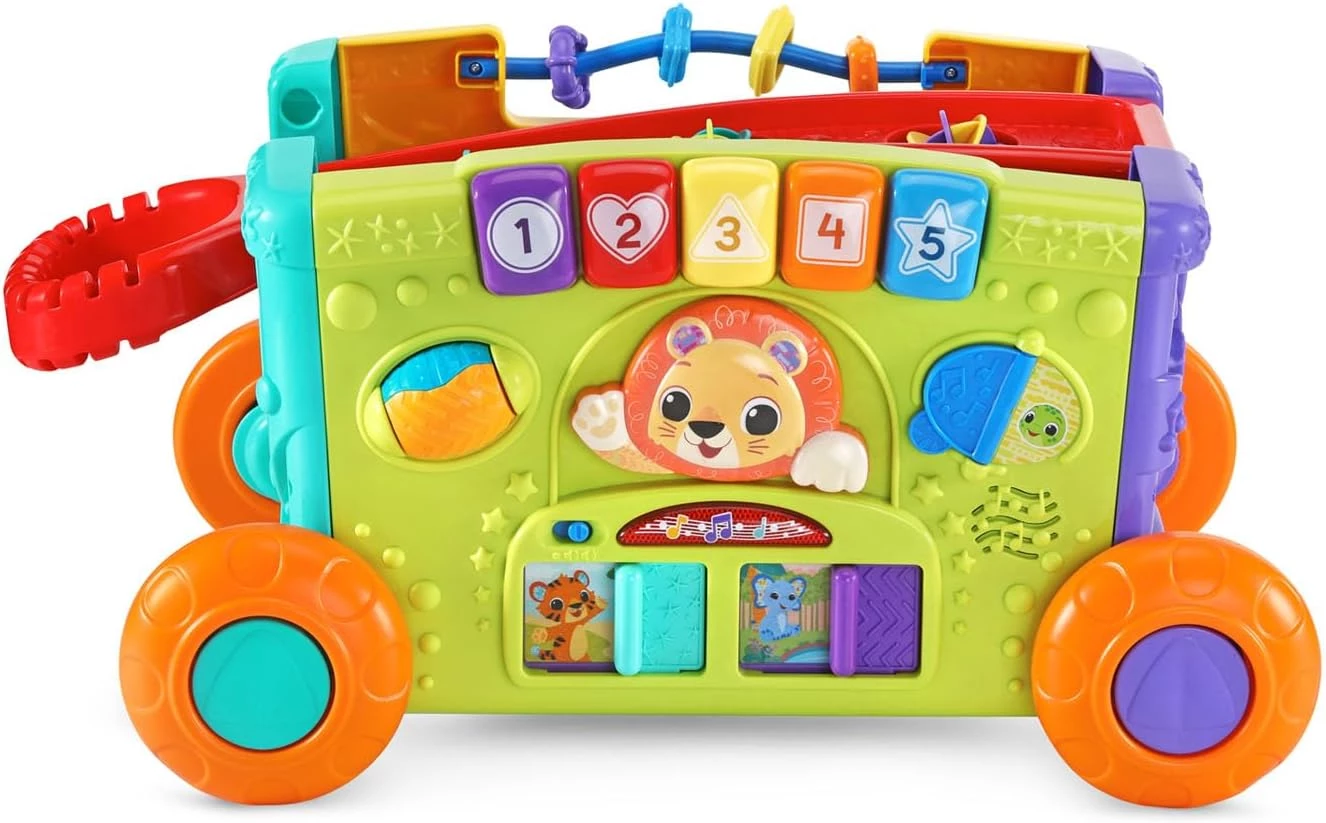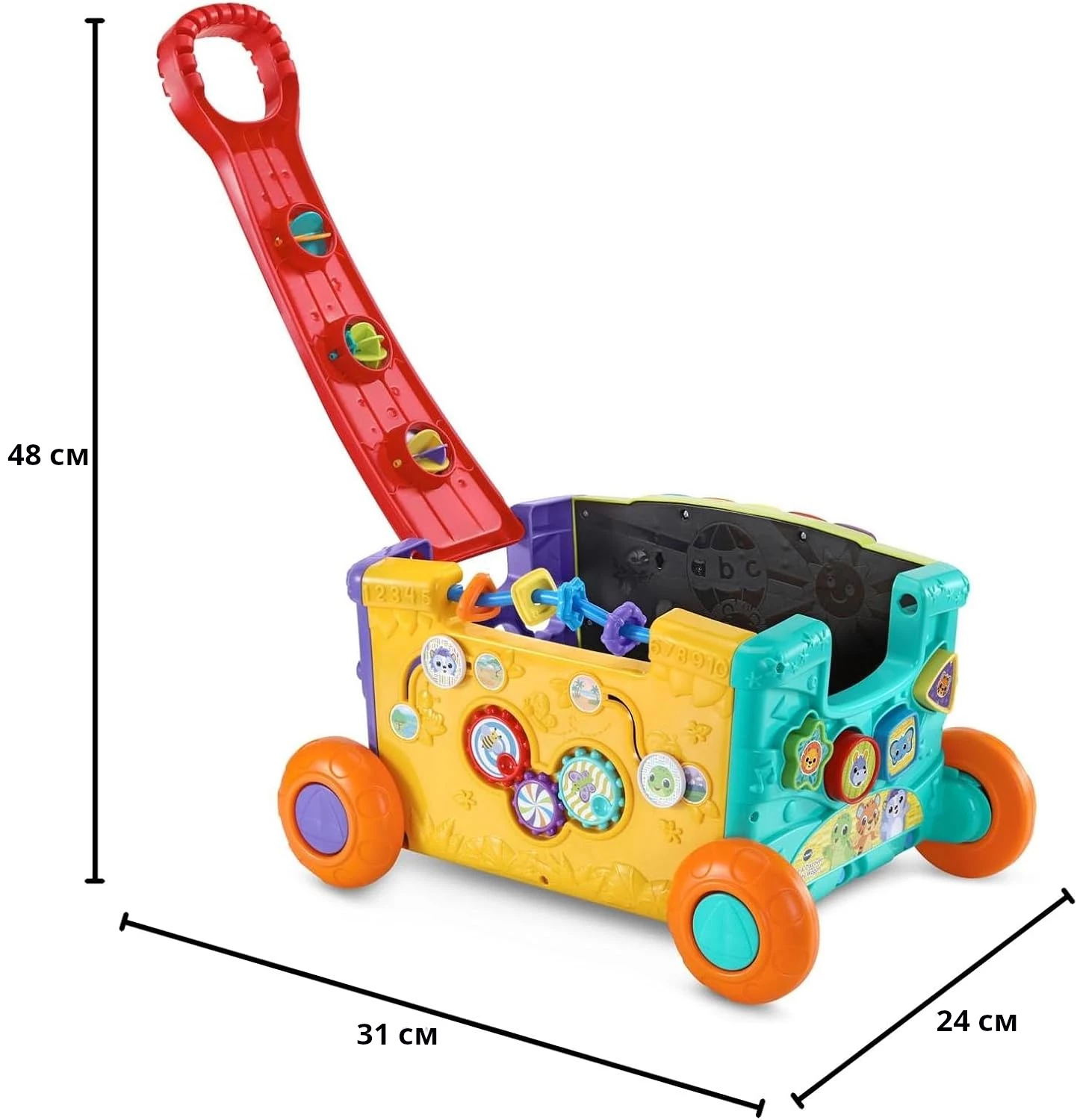Каталка развлечет маленьких исследователей веселой музыкой и звуковыми эффектами, что сделает детскую игру еще интереснее. Тележка оснащена всевозможными разноцветными элементами, которые не дадут малышам скучать и помогут потренировать важные умения и навыки.