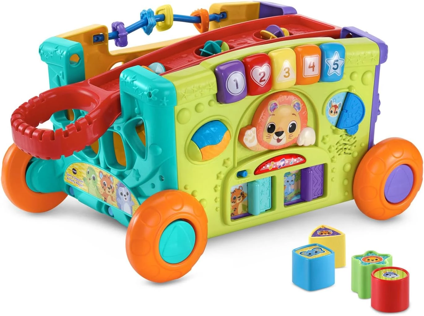 Сортируй по форме, вращай шестеренки, открывай дверцы, проходи лабиринты, словом, весело проводи время с этим волшебным вагончиком от торговой марки VTech. Положи в кузов любимые игрушки, ланч и все, что тебе может понадобиться на пути к приключениям.