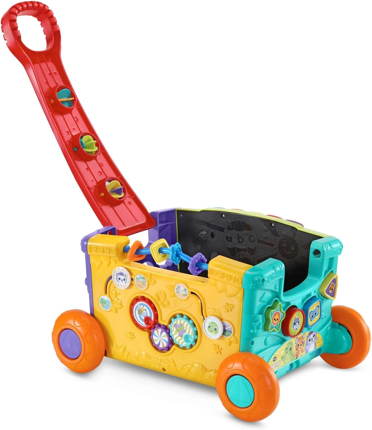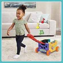Толкая тележку, ребенок сможет наслаждаться веселой фоновой музыкой.