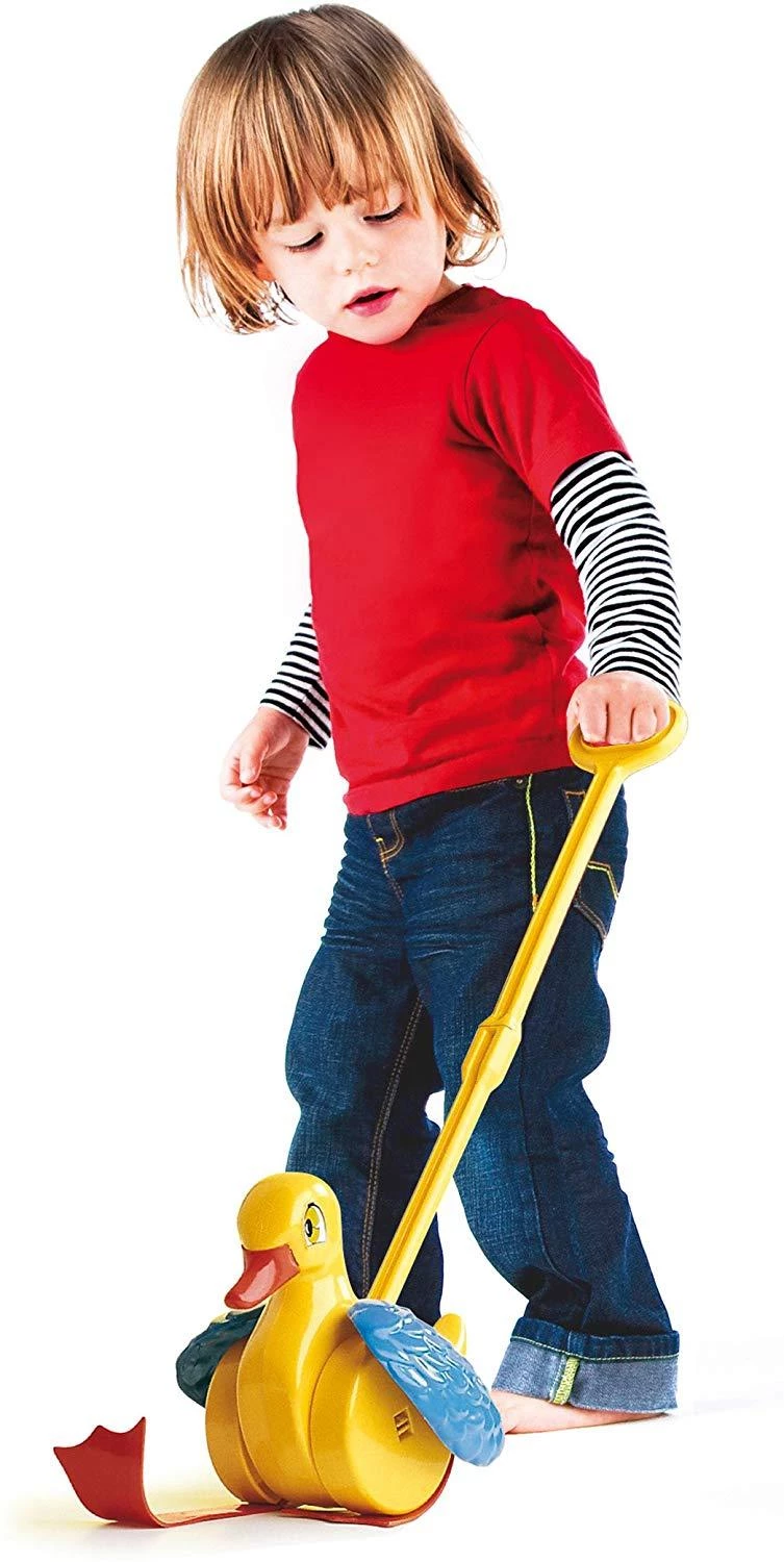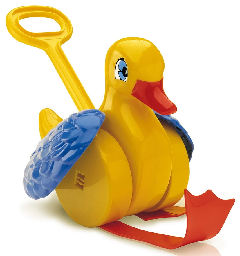 Очень веселая игрушка в виде утки поможет ребенку начать уверенно ходить. Она имеет высокую ручку, чтобы малыш мог за нее держаться и идти. Утка передвигает лапками, машет крылышками и издает соответствующие звуки. Такая игрушка просто необходима ребенку, который начинает делать свои первые шаги, ведь так процесс становится более увлекательным и интересным. Утка выполнена из качественных безопасных материалов, отличающихся долговечностью использования и ярким дизайном.
