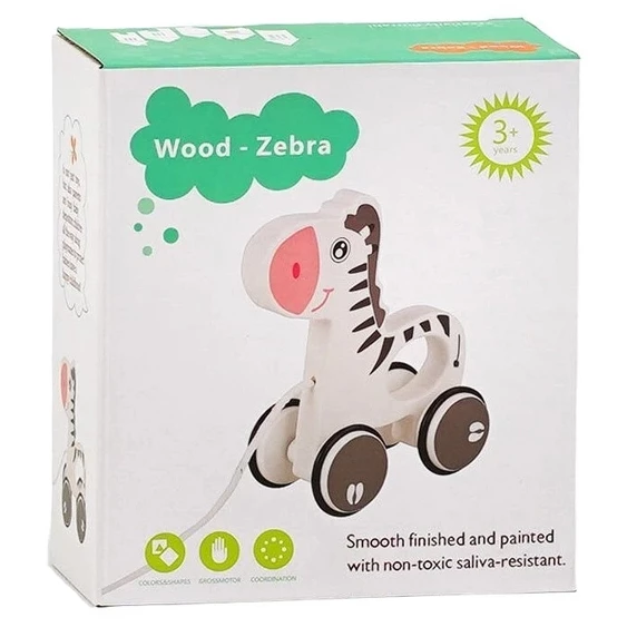 Забавная зебра будет отличным спутником ребенка во время прогулки или активных игр дома. Она сделана из дерева и все ее края хорошо отшлифованы. Каталка мотивирует ребенка активно двигаться, бегать, ходить - развивая двигательные навыки.