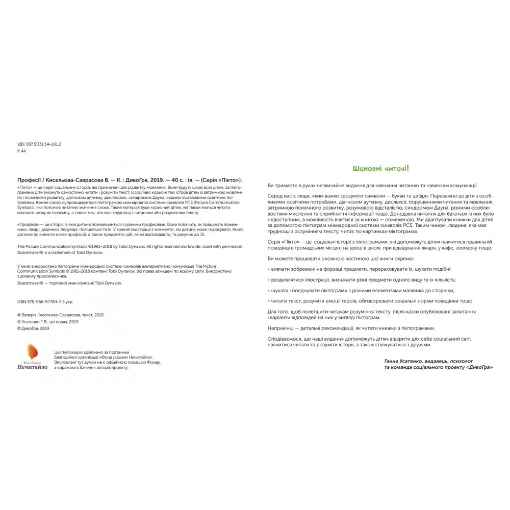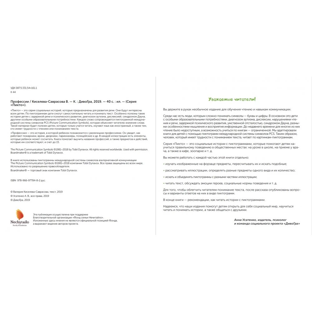 «Профессии» (укр. или рус.), книга с пиктограммами для развития речи у детей с аутизмом и речевыми нарушениями, социальная история