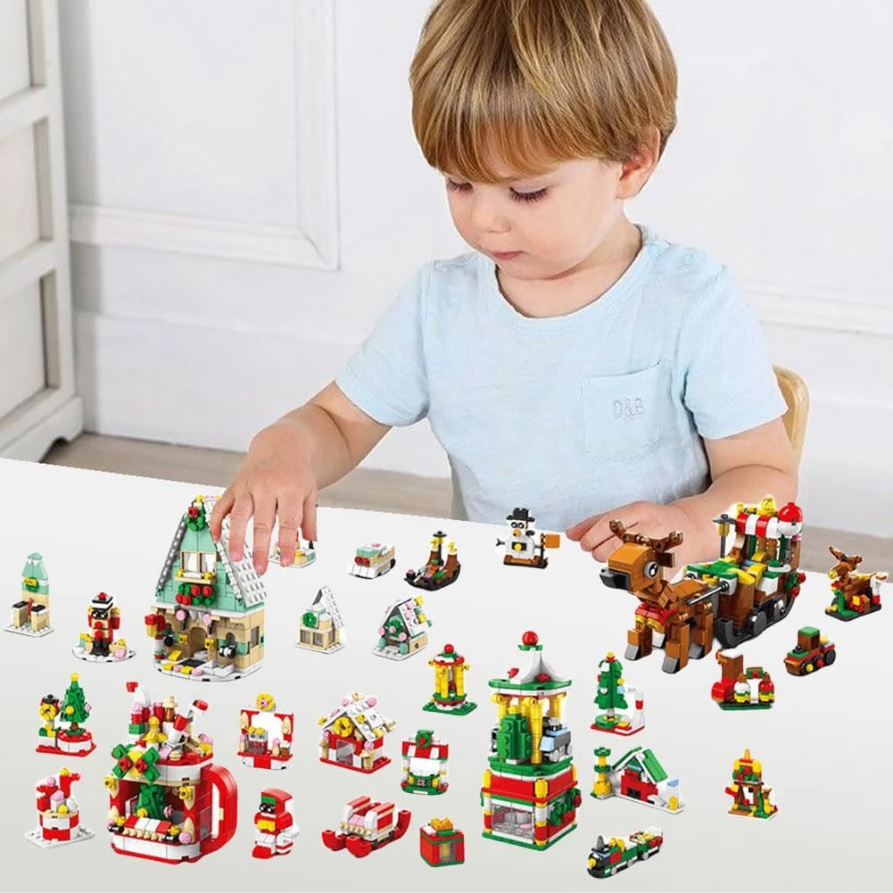 Данный Рождественский адвент календарь на рождественскую тематику содержит 24 сюрприза. Он поможет создать насыщенную праздничную атмосферу и позволит маленьким фантазерам весело проводить время в ожидании праздника. Праздничный набор включает в себя пластиковые строительные блоки совместимые с Лего.