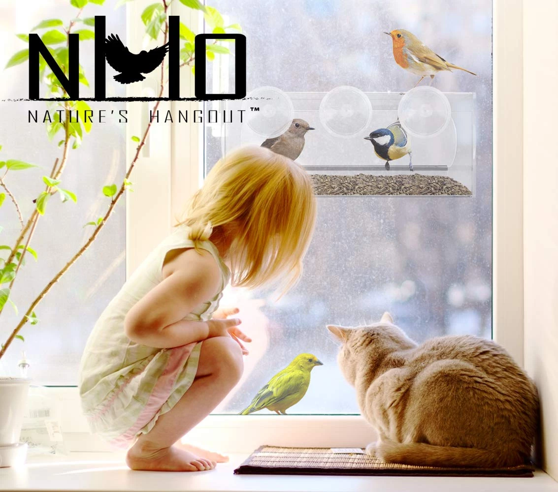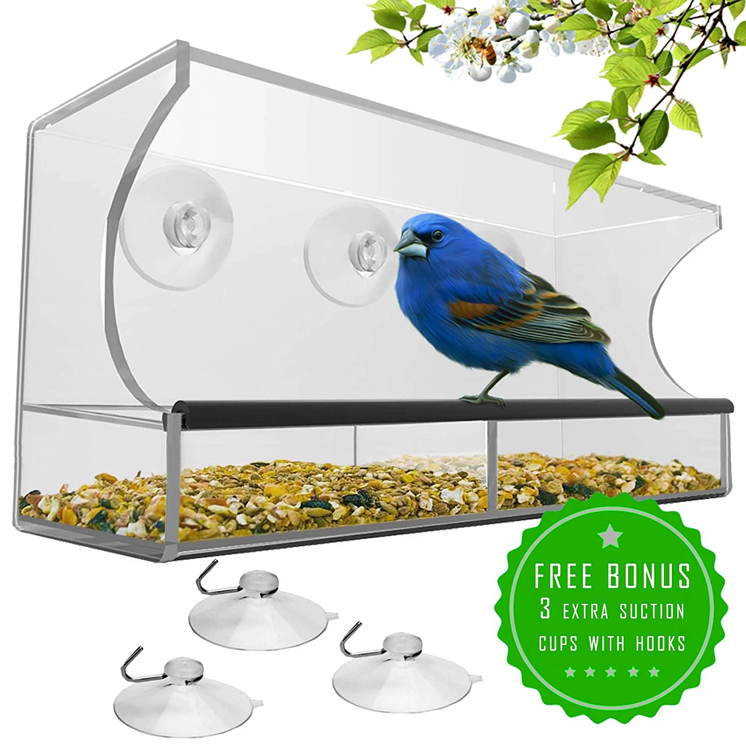 Window Bird Feeder with Strong Suction Cups and Seed Tray