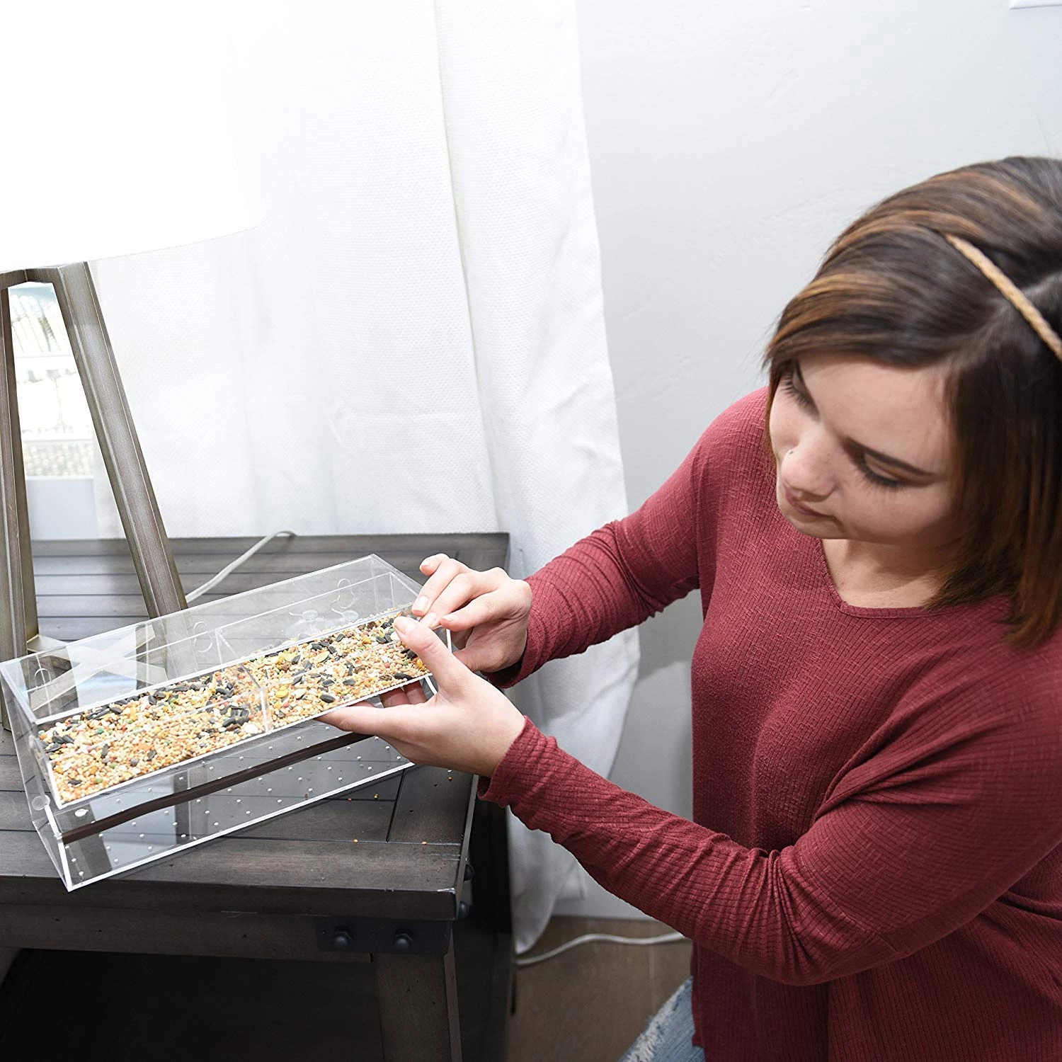 Этот вместительный лоток вмещает до 4 чашек семян корма. Это в два раза больше семян чем обычно, так что вам не придется пополнять кормушку слишком часто!