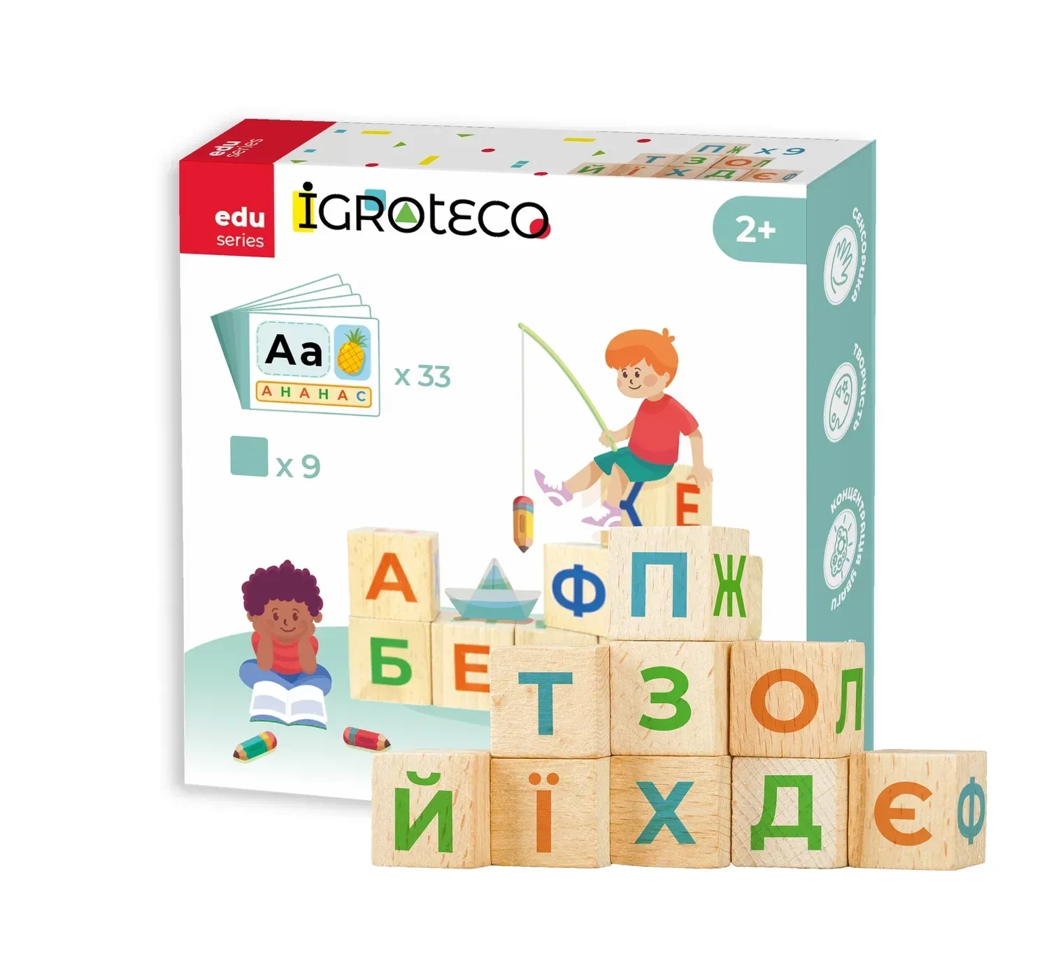 Играя с предлагаемым набором, ребенок будет изучать буквы: на каждом кубике напечатана буква алфавита. Это позволит ребенку знакомиться с украинским алфавитом в игровой форме. Кубики также подходят для составления простых слов. Такая игра стимулирует развитие словарного запаса и помогает понять, как буквы образуют то или иное слово. Играя кубиками, дети потренируют руки и пальчики, что поможет подготовиться к письму.