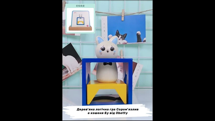 Видео Деревянная логическая игра Застенчивый котенок Бу от Obetty
