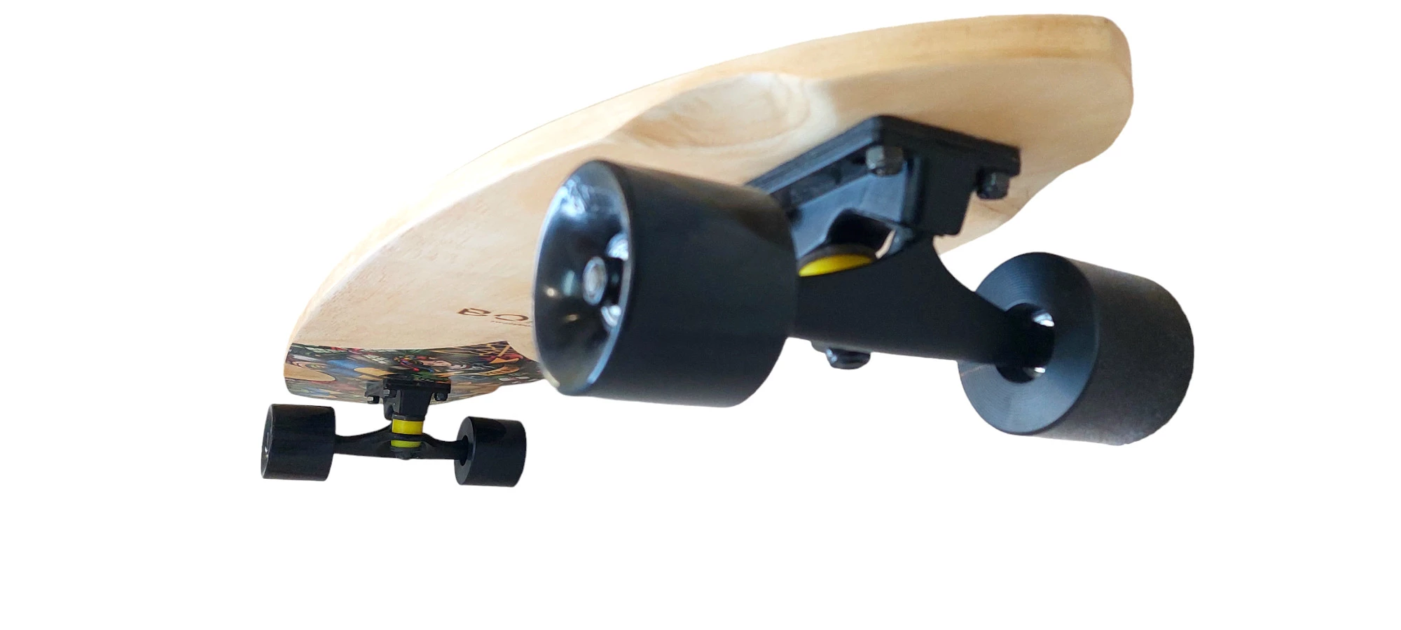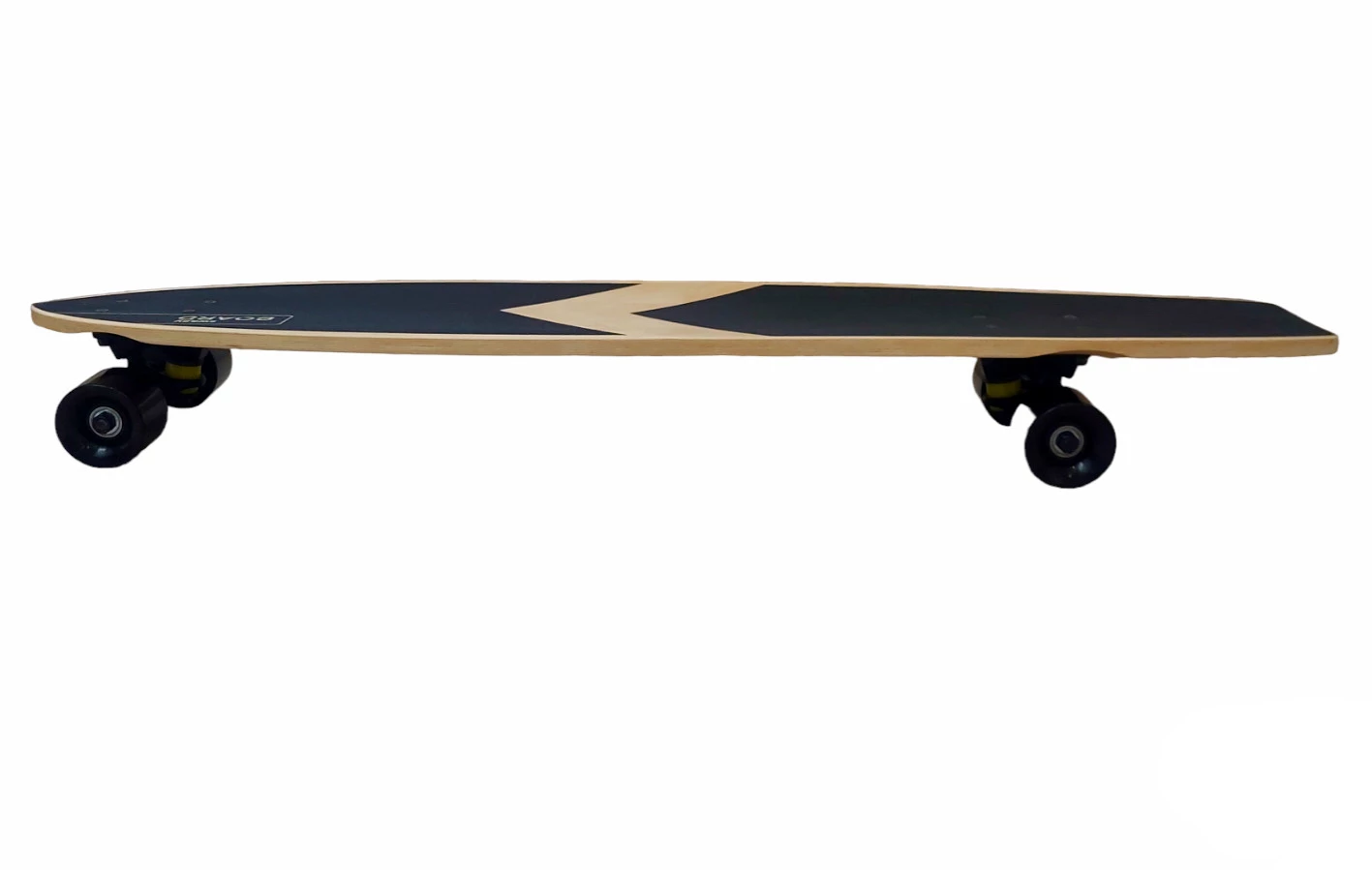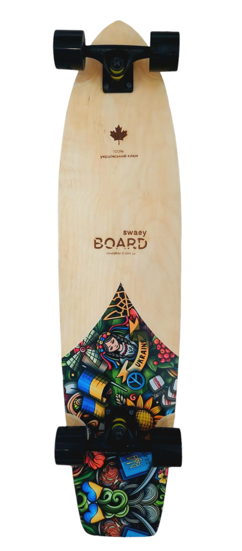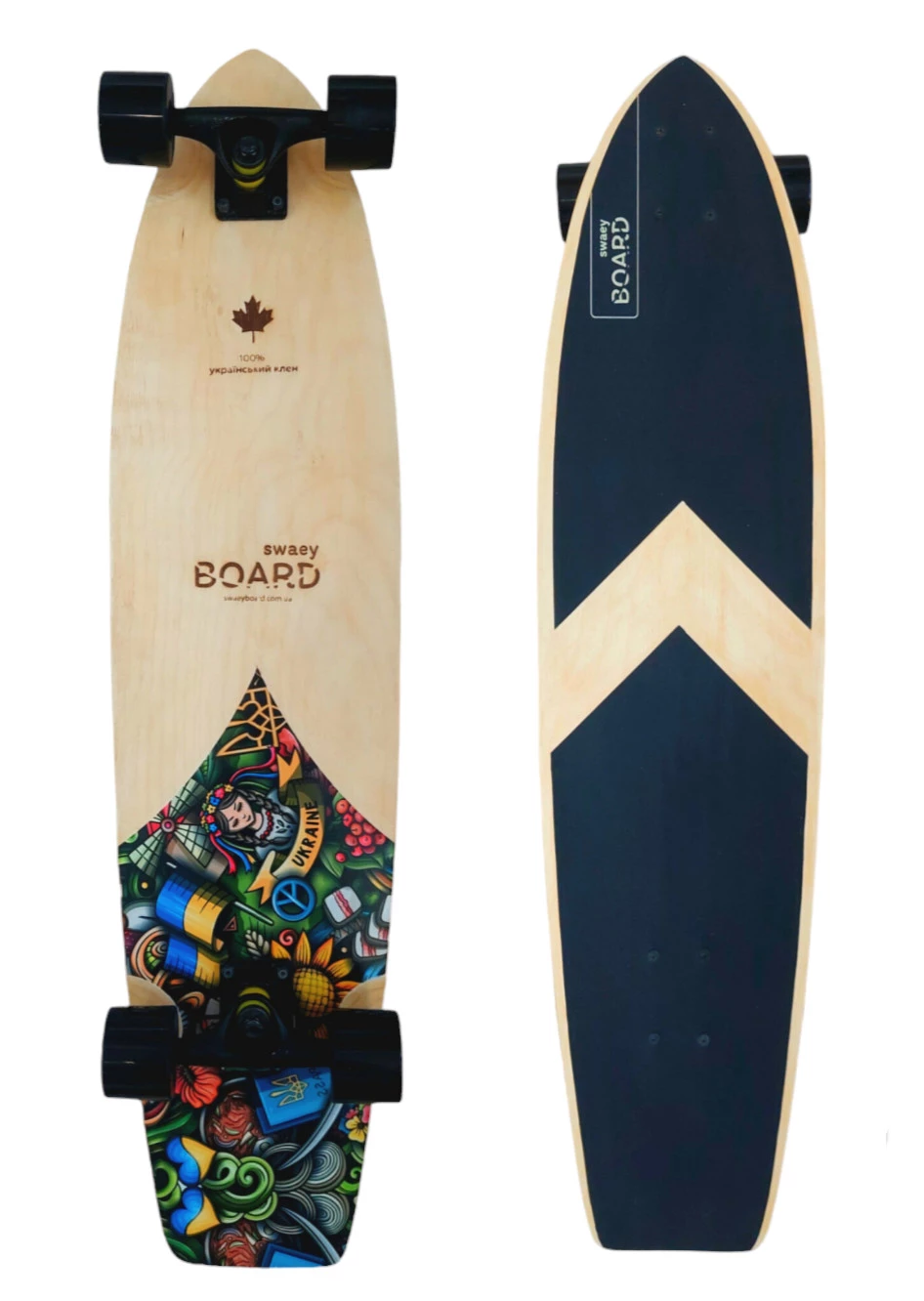 Доска 8 слоев выполнена из украинского клена. Толщина 12 мм. Размер лонгборда 90 х 22 см. Покрытие — наждак. Имеются выемки под колеса, обеспечивающие защиту от трения. Подвеска алюминиевая матовая. Бушинги 85A. Диаметр колес — 45 мм. Надежные подшипники ABEC-7. Колеса бесшумные и маневренные. Уровень жесткости колеса — 84A. Ширина колесной базы 190 мм. Максимальная нагрузка составляет 100 кг.