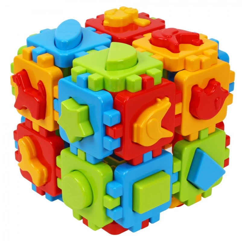 Эта игрушка создана специально для малышей, чтобы они могли весело проводить время, играя и обучаясь. Игрушечный сортер в собранном виде имеет форму куба, на гранях которого находятся отверстия для вставки геометрических фигур, а также фигурок животных.