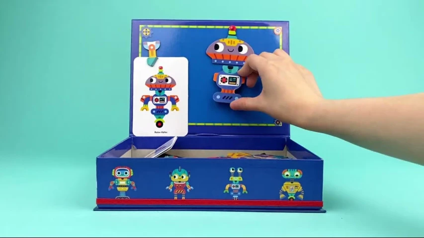 Выбирайте любую карточку с изображением робота, ищите нужные магнитные элементы и соединяйте их друг с другом, воспользовавшись магнитной поверхностью. Кроме того, ты имеешь возможность создавать собственных роботов, проявив творческий подход к делу. Только тебе решать, как будут выглядеть твои роботы!