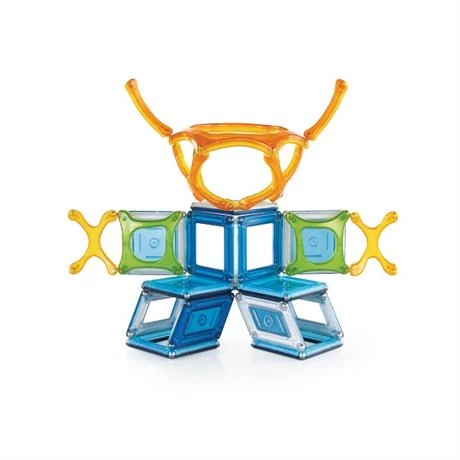 Магнитный конструктор с легкой системой соединения элементов. В комплекте цветная брошюра с примерами моделей и оригинальным комиксом. В наборе есть декорации и фигурка космического человечка для игры. Дети смогут разыграть приключения с космическим человечком, межпланетными кораблями и пришельцам.