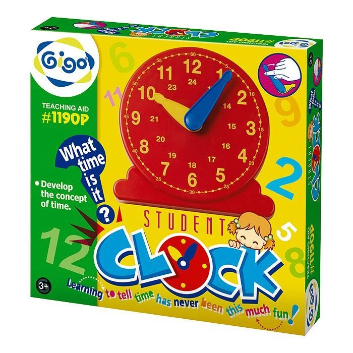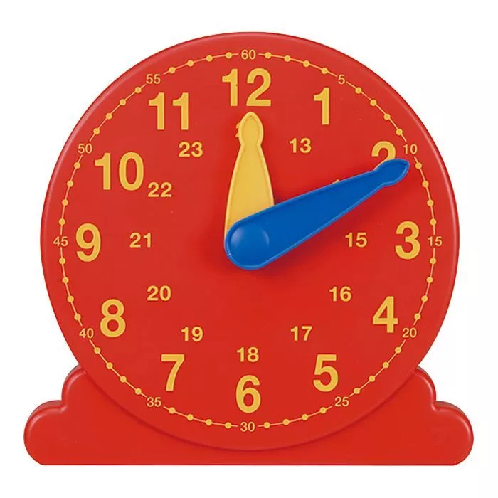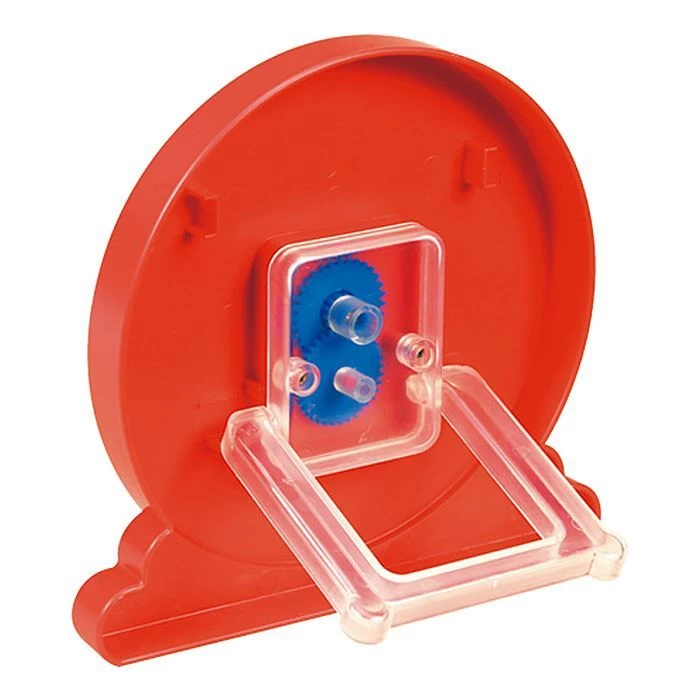 Небольшие часы диаметром 13 см подходят для обучения времени. Стрелки часов разного цвета и соединены с шестеренками. Как в настоящих часах, когда большая стрелка делает оборот, маленькая стрелка переходит на следующий час. Детям можно показать 12 часов и 24 часа, а также минуты: 5-60.