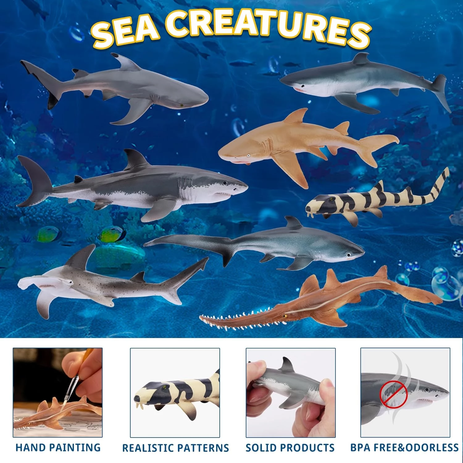 TOYMANY 8PCS Shark Toys Sea Creature Animals Figures, Plastic Ocean Animal Figurines Bathtub Toy