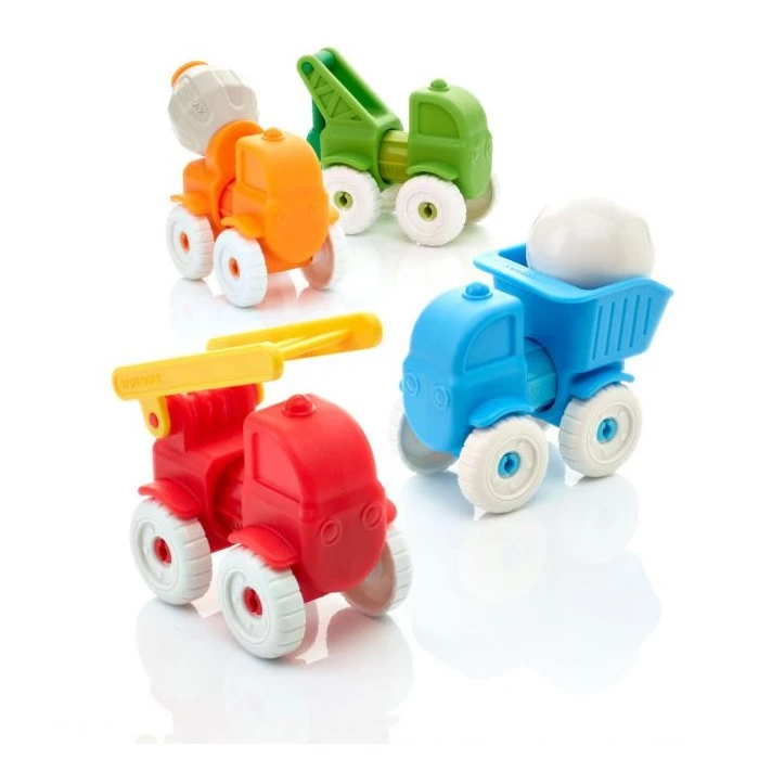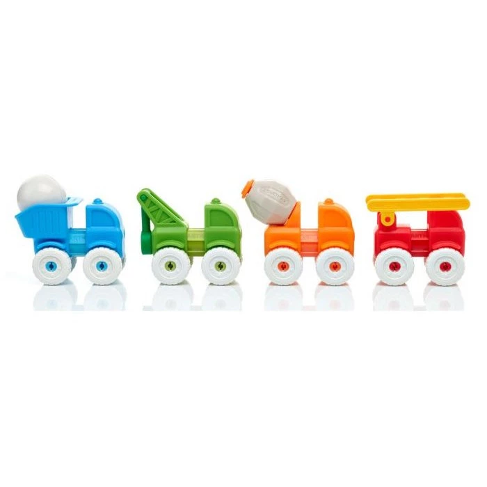 Откройте для ребенка магию магнетизма с мини-набором из 13 элементов «Мои первые машинки». Детали данного магнитного конструктора представляют собой строительные блоки, позволяющие создавать четыре вида транспортных средств: пожарную машину, эвакуатор, самосвал и бетономешалку. Грузовой транспорт можно соединять друг с другом, создавая автопоезд. Машинки передвигаются на своих колесах. Элементы набора можно смешивать и соединять, стимулируя творческие способности и изобретательность ребенка.