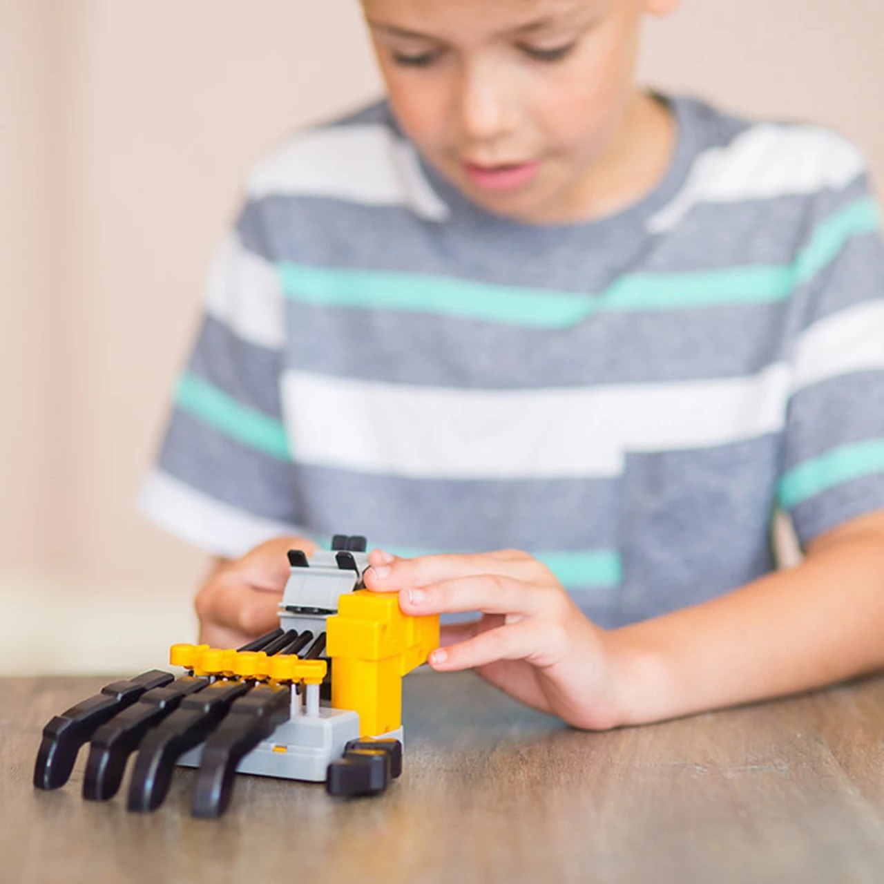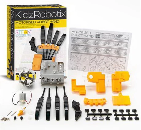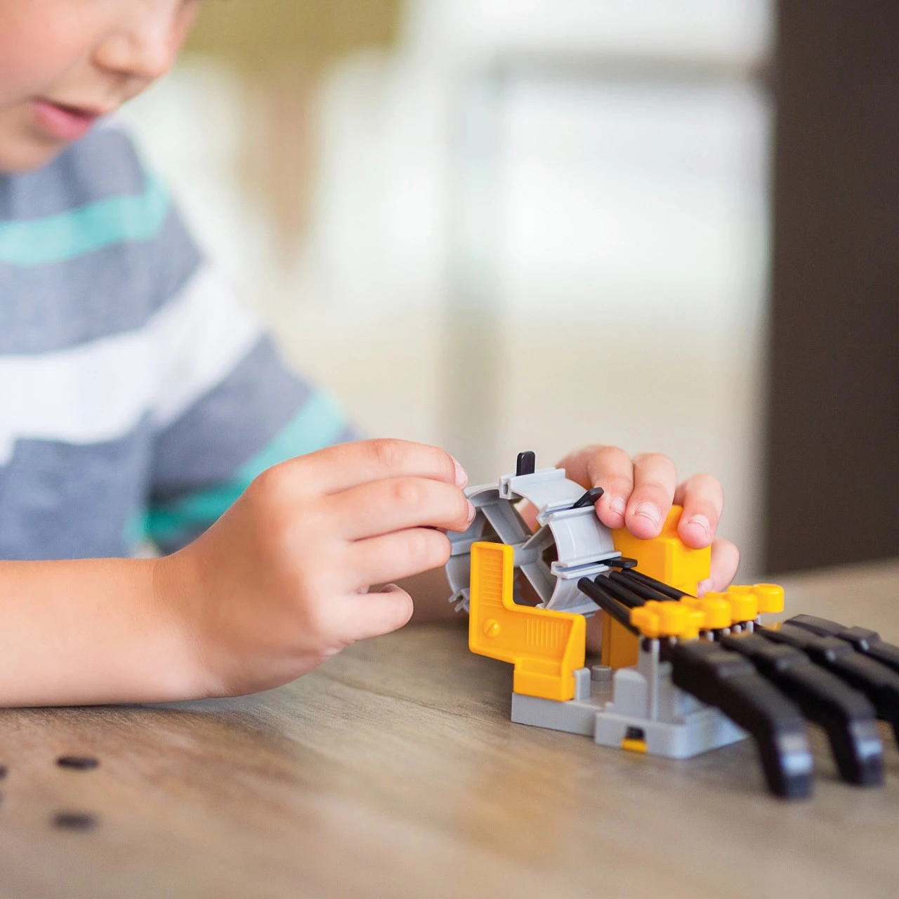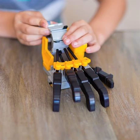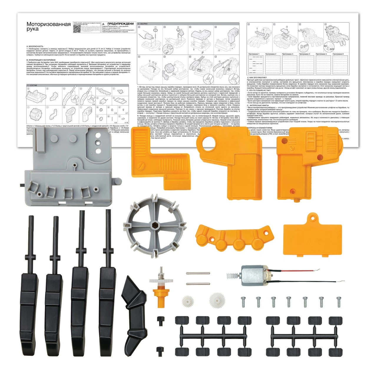 С этим увлекательным STEAM набором, дети смогут изучать основы механики и анатомии. Принцип работы роботоруки - музыкальная шкатулка, сможет выстукивать любой заданный ритм. В наборе идет подробная инструкция, в которой описаны этапы сборки и примеры ритмов для выстукивания. После сборки модели, ребенок сможет запрограммировать руку выстукивать разные ритмы.
