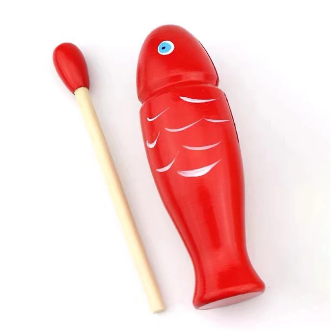 Этот музыкальный инструмент поможет развить слуховое восприятие, мелкую моторику, познакомить с ритмами. Чтобы извлечь звук нужно достать палочку и постучать по корпусу рыбки. Изделие выполнено из натурального дерева, не имеет острых краев. Яркое исполнение моментально привлечет внимание ребенка. Инструмент идеально подходит для знакомства малыша с музыкой, темпом и ритмом. Благодаря плавным формам и гладкой поверхности рыбку удобно и приятно держать в руках.