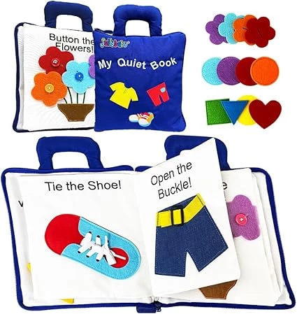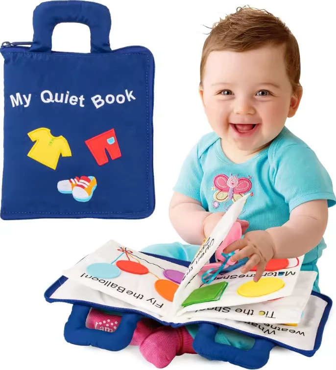 Приятный бонус этой книги в том что ее можно стирать. Она хорошо развивает малыша, учит завязывать шнурки, застегивать пуговицы. Все что пригодиться в развитии малыша, все есть в этой книге. Также и разнообразные яркие картинки
