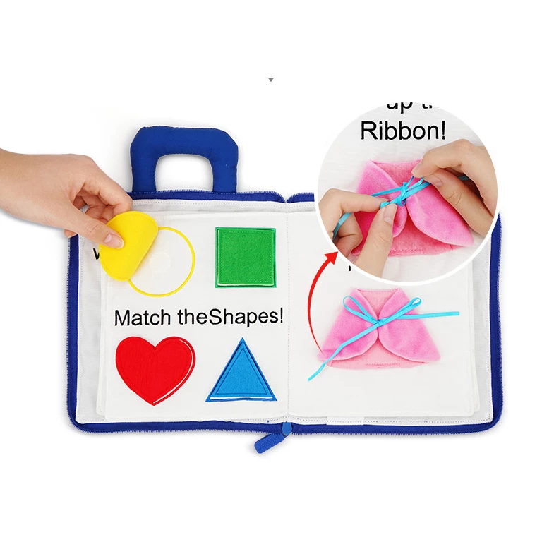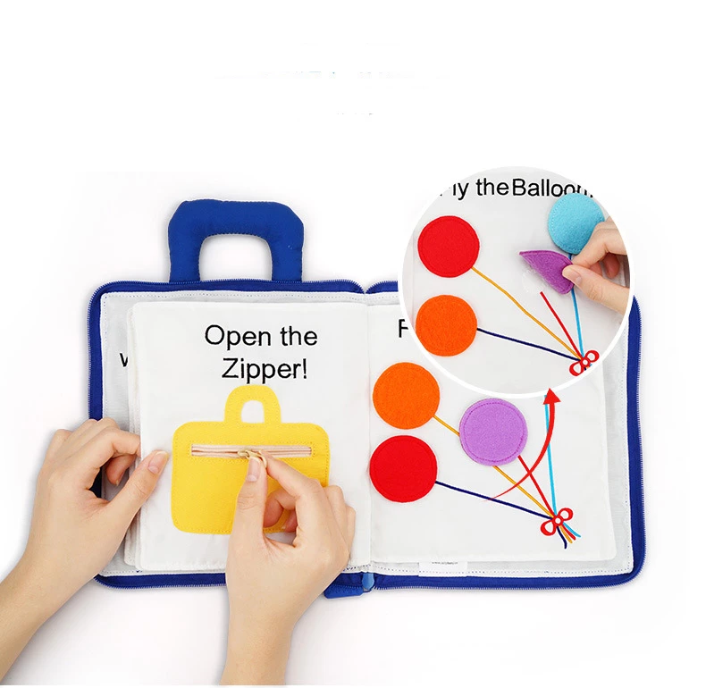 Яркая мягкая книжка для малышей. В ней много шнуровок, липучек, замочков и много другого. В книге 8 интерактивных страниц с простым текстом и красочными иллюстрациями, которые помогут детям изучить время, формы и многое другое! Книга с ручками для удобного хранения и переноски. Кроме того, книжку можно стирать вручную и в стиральной машинке.