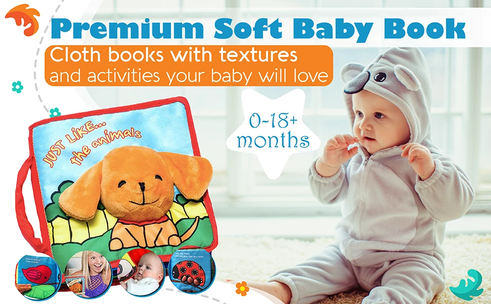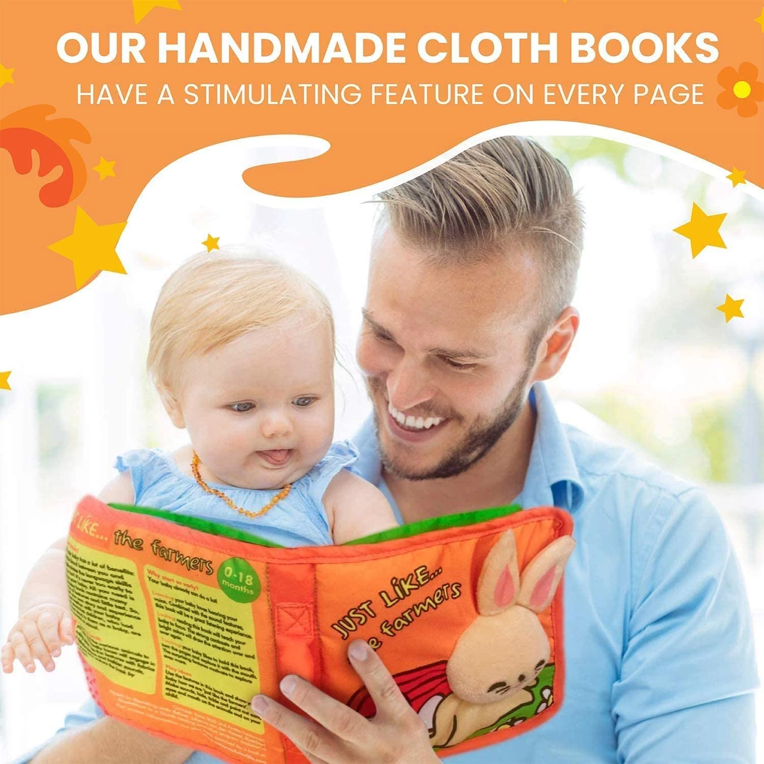 Orange Premium Soft Baby Book First Year, Cloth Book with Crinkly Sounds