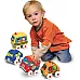 В набор входят 4 автомобиля: пожарная машинка, полицейский автомобиль, школьный автобус и легковая машина.