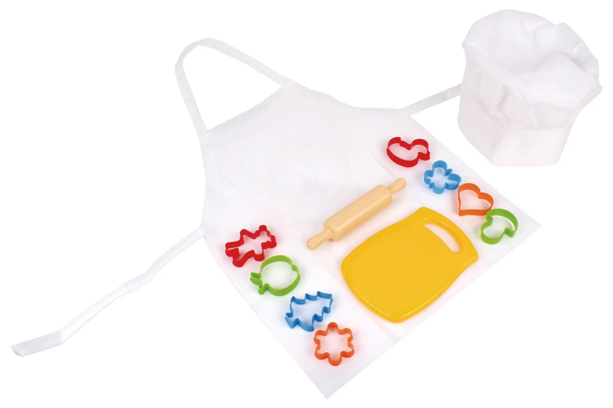 Чтобы кухонные эксперименты стали еще реалистичнее, в наборе имеется белый фартук с ярким рисунком и настоящий поварской колпак. В качестве приятного бонуса вы найдете в наборе рецепт вкусной выпечки.