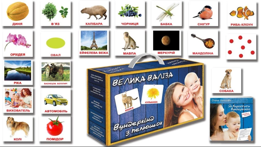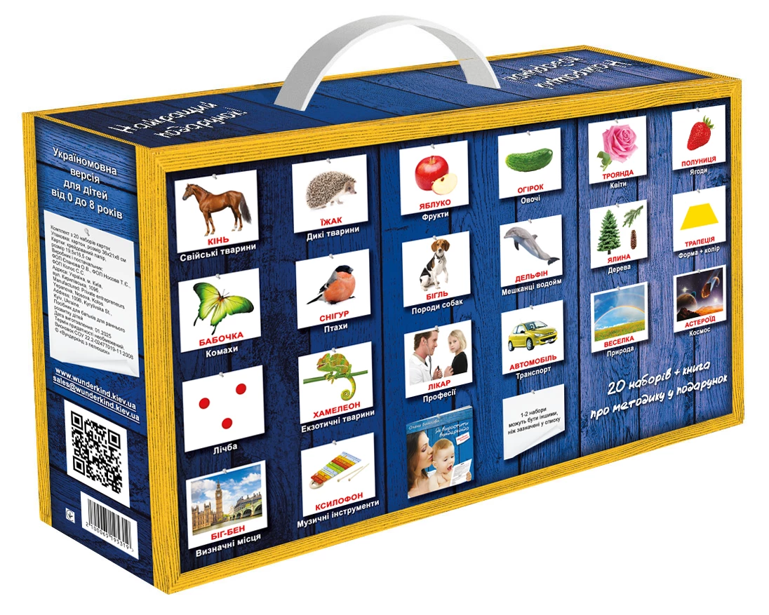 Данный набор включает в себя 20 комплектов карточек на украинском языке. Все тематические наборы можно приобрести и отдельно, но большой набор позволит заранее наметить цели и двигаться к ним в удобных темпах.