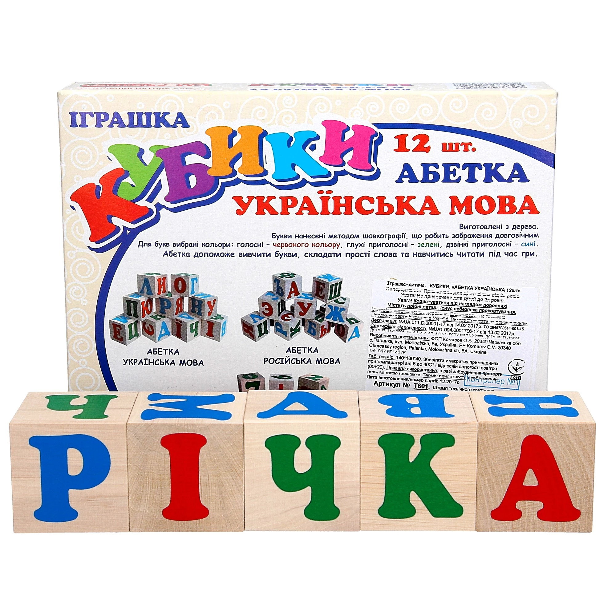 Набор из двенадцати кубиков с нанесенными на них буквами украинского алфавита — интересный и полезный подарок для малышей. Такая игрушка поможет вашему ребенку выучить буквы, а также научиться составлять слоги и слова. Буквы нанесены на кубики методом шелкографии, благодаря чему они не будут стираться долгие годы.
