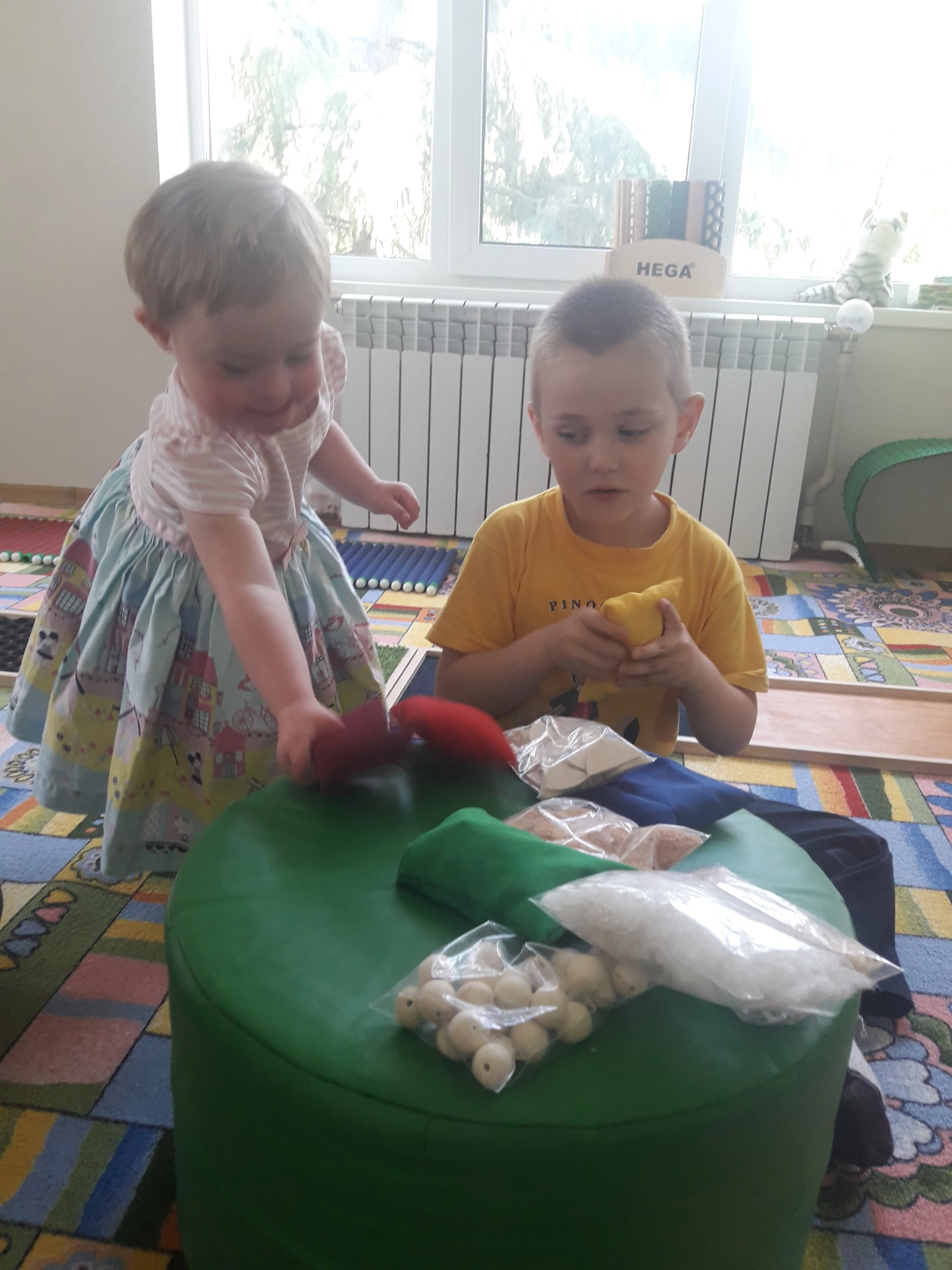 - 3 цветных тканевых мешочка с разным наполнением (10 x 15 см).
