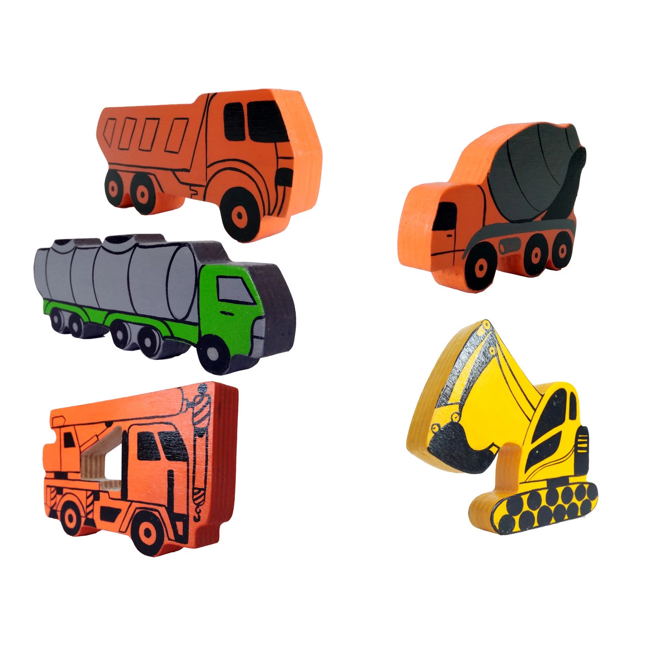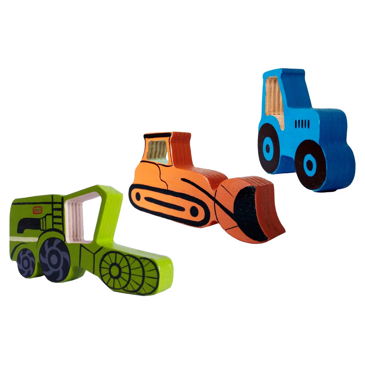 Машинки — лучший подарок для каждого мальчика. В комплект входят деревянные модели строительной и сельскохозяйственной техники, а также образцы другого транспорта — всего 13 предметов.