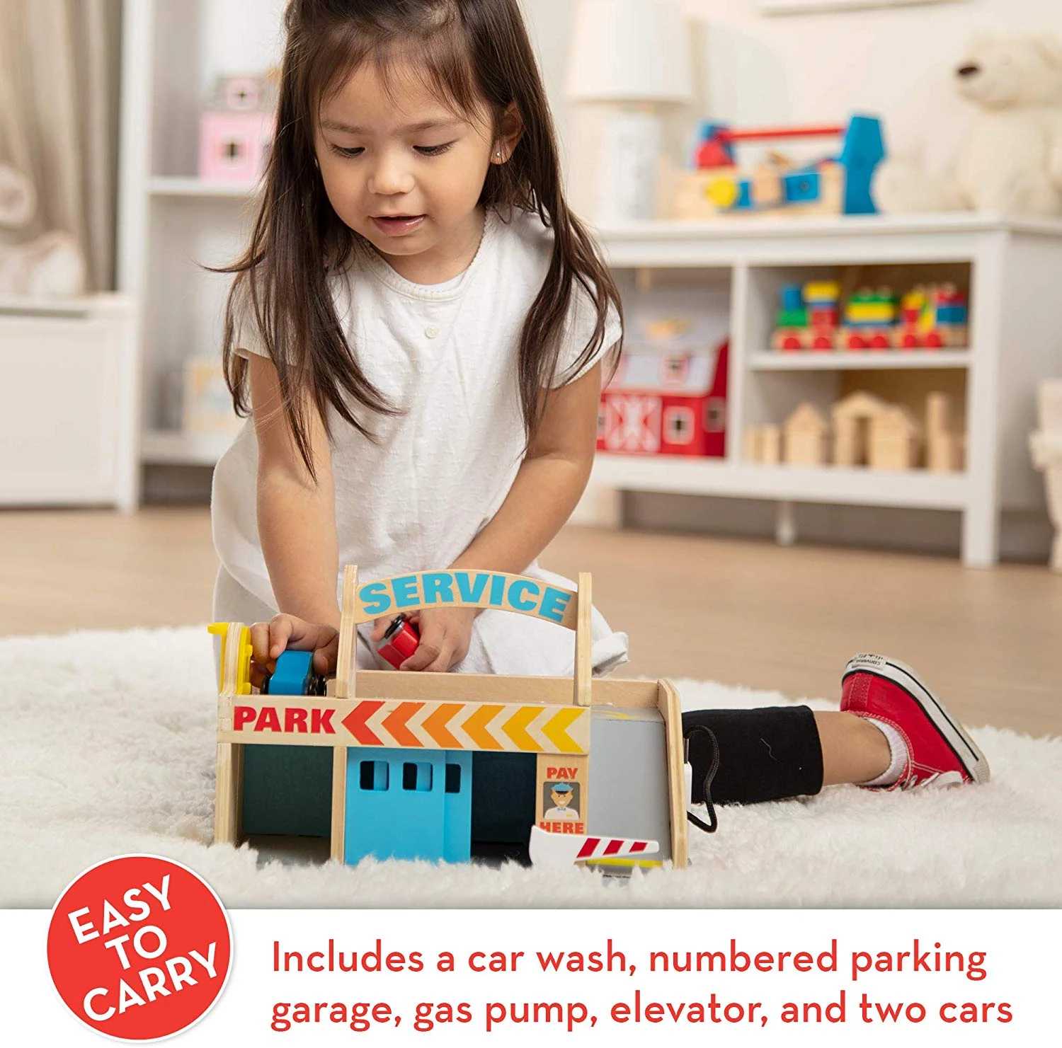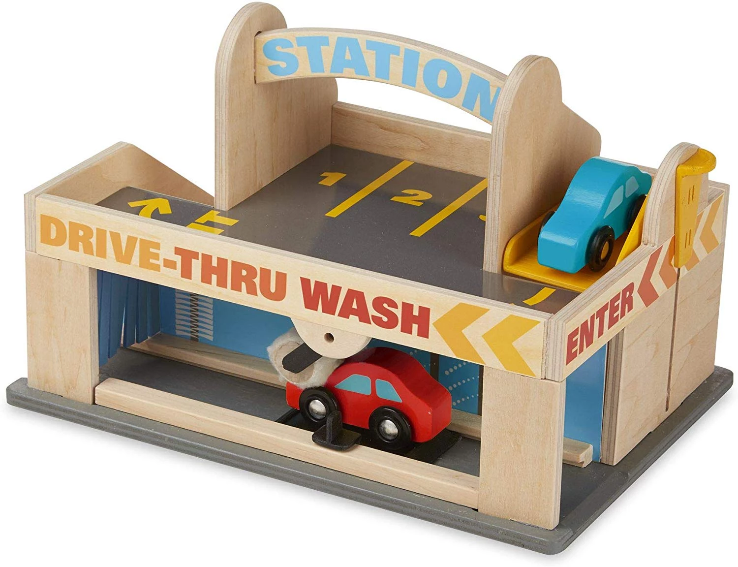 Двухуровневая сервисная станция - это целый комплекс для игры. Включает в себя автомойку, пронумерованный гараж, газовый насос, гараж с дверями, лифт и две машинки. Лифт поднимается и опускается, чтобы доставить автомобили на верхнюю парковку, ворота поднимаются и опускаются.