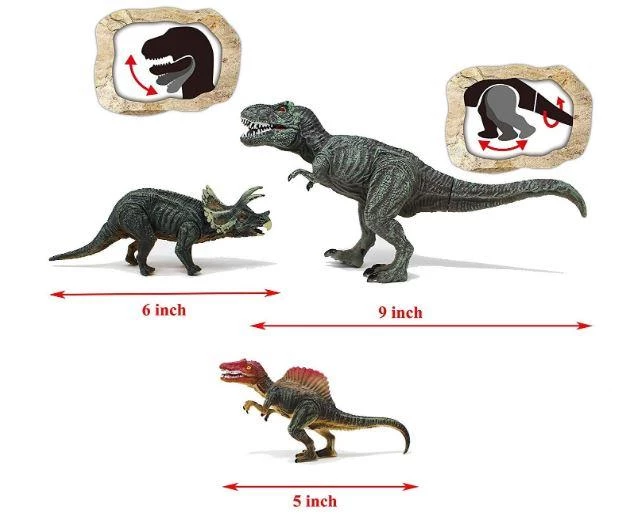 Размеры динозавров 13-23 см, чтобы построить более реалистичный парк динозавров юрского периода. В наборе так же есть 4 вида игрушечных камней/скал для более реалистичного сюжета во время игры.
