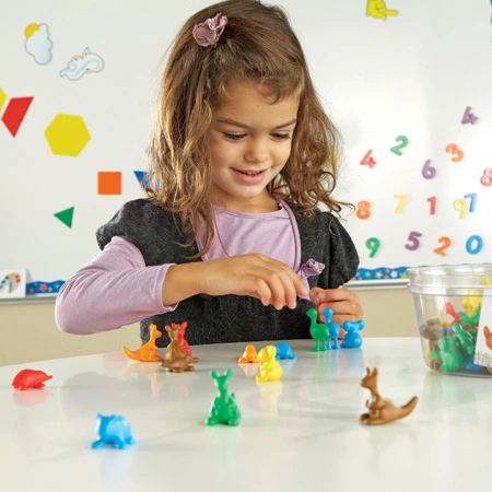 С этим набором можно на практике научится подсчету, сортировке, распознаванию цвета и многое другое! Животные фигурки представлены в 6 разных цветах и представляют собой животных, живущих в Австралии.