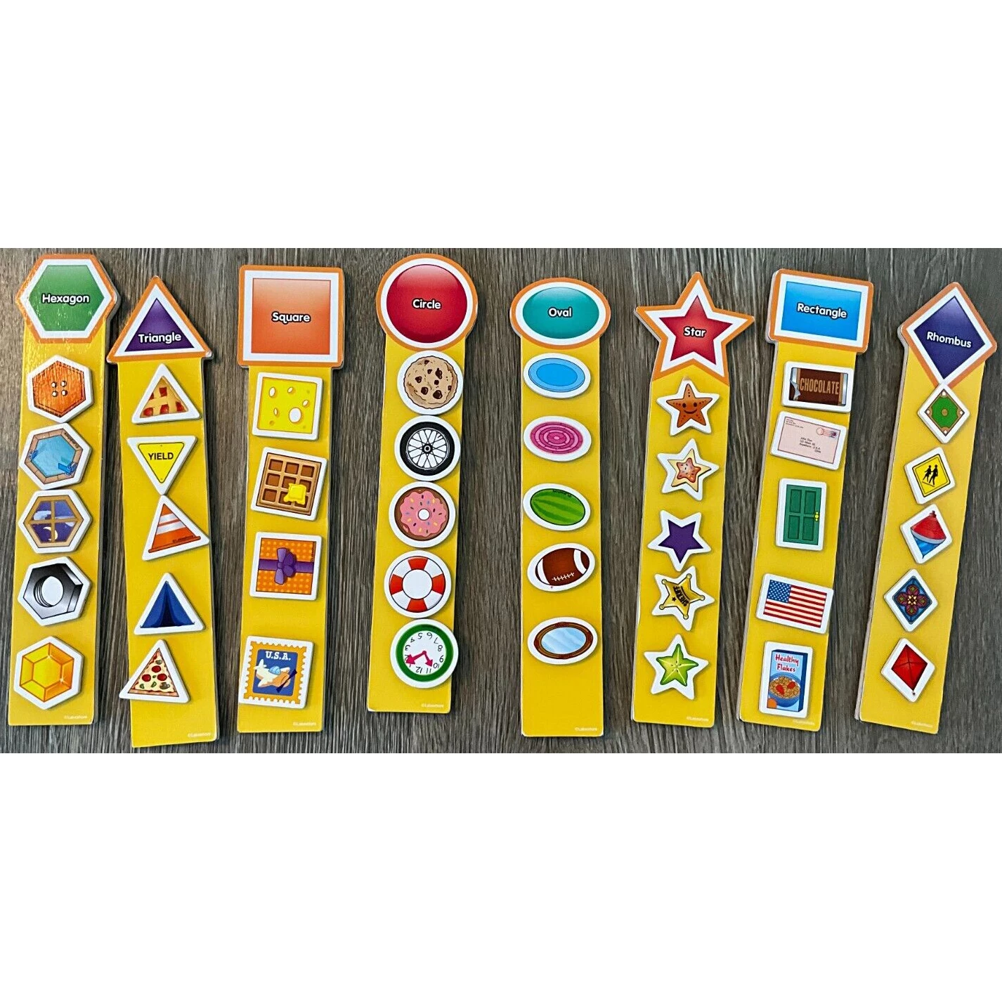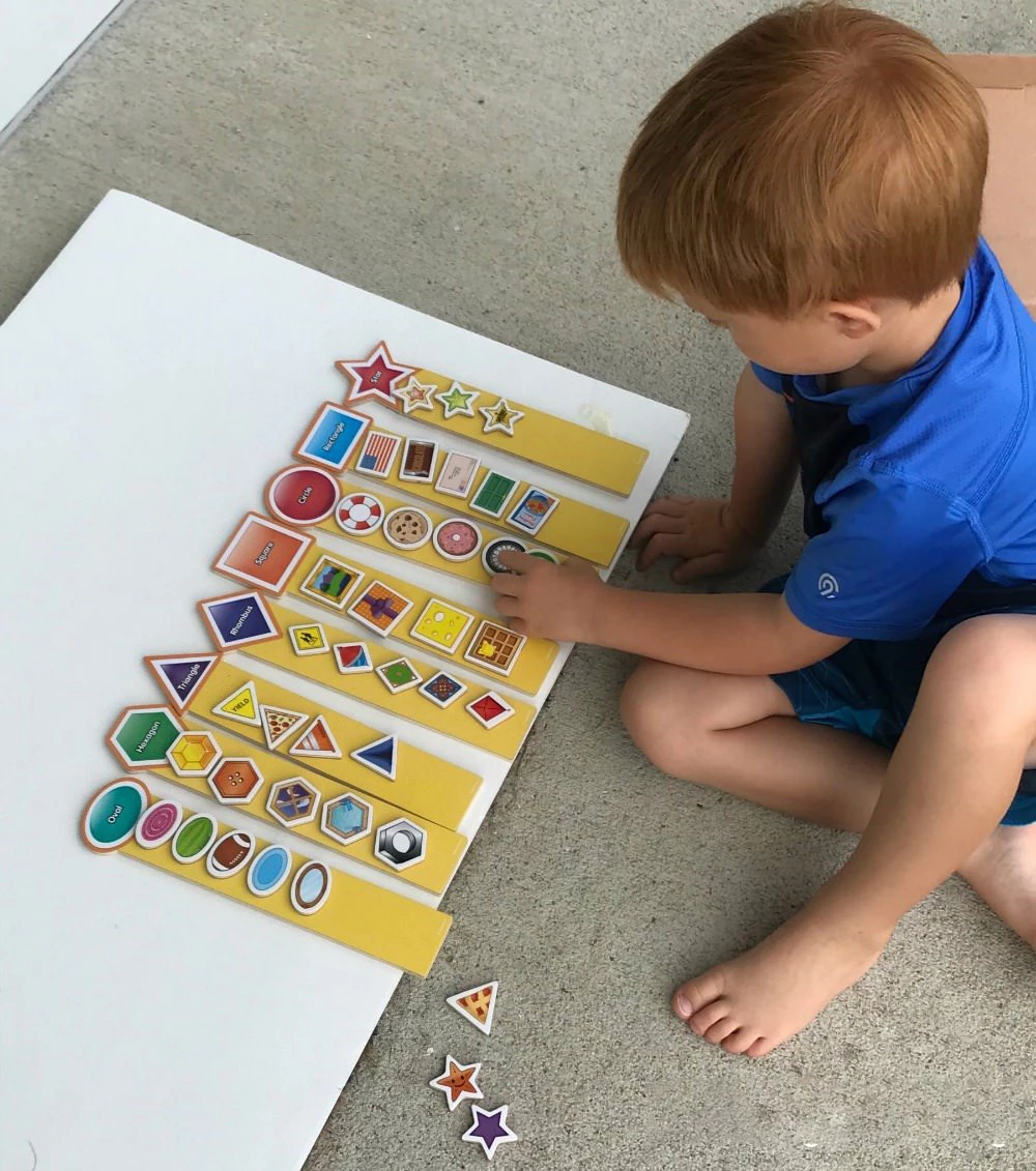 Развивает навыки распознавания и идентификации фигур, сортировки по атрибутам и формам.