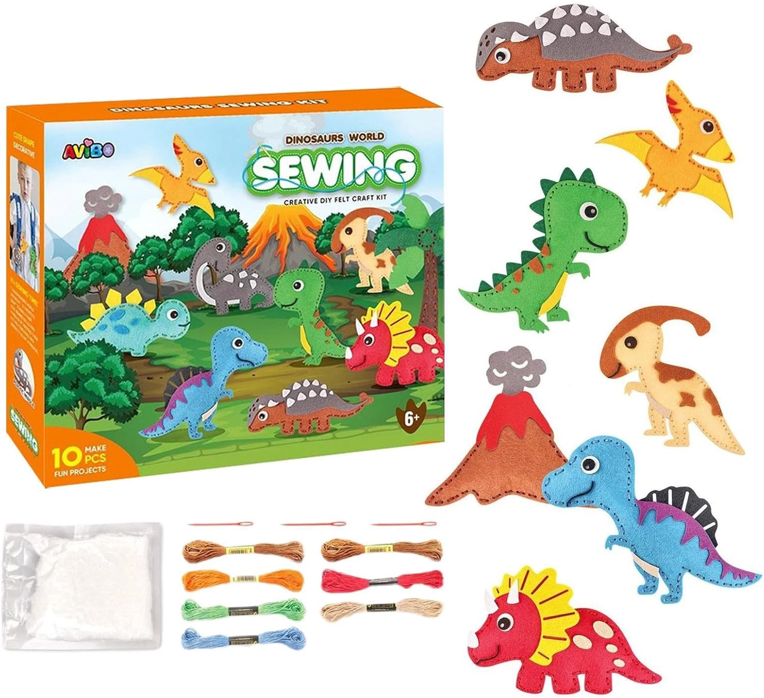 Созданные плюшевые динозавры станут отличным украшением для детской комнаты, гирляндой или подарком. В наборе 7 фигурок.