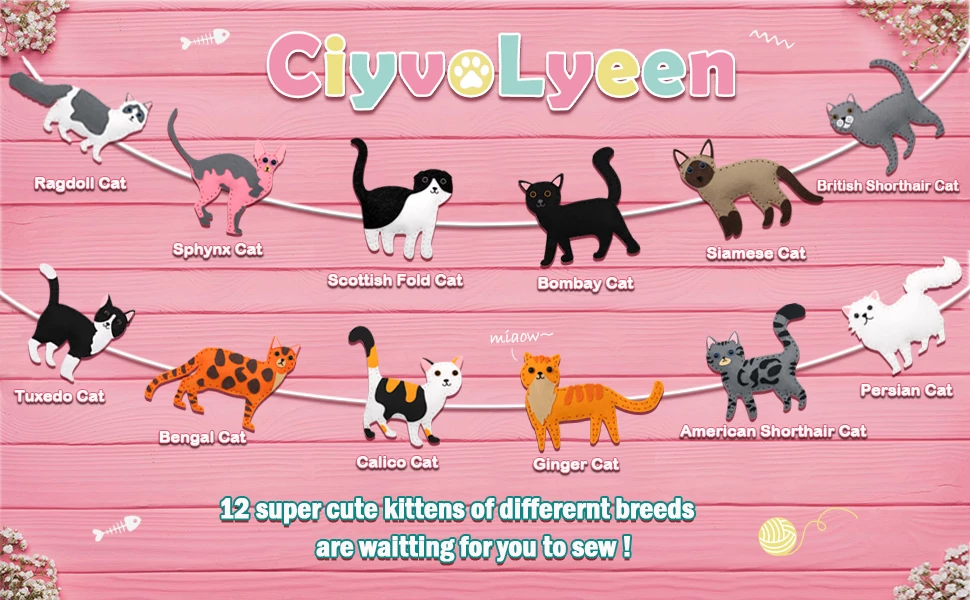 Любители кошек однозначно полюбят данный набор, ведь вместе с ним можно создать игрушки в виде кошечек и создать гирлянду.