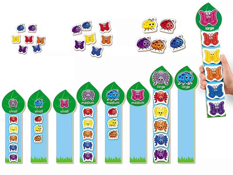 Дети просто сортируют магниты насекомых по размеру, чтобы соответствовать картинке на верху полоски!