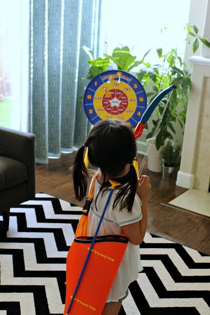 Набор для настоящих Робин Гудов! Набор для стрельбы из лука безопасен для детей, благодаря стрелам на присосках Дети используют гибкий пластиковый лук, чтобы стрелять безопасными стрелками на присосках - складывая числа во время игры! Выиграл тот - кто наберет большую сумму очков.