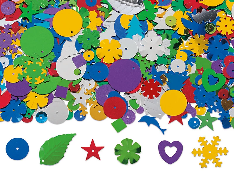 Набор блестящих форм разных цветов, размеров и форм подойдет для для всех видов творческих проектов. В наборе можно найти: снежинки, перья, формы птиц и летучих мышей! Блестящие фигурки в удобной банке для хранения понравятся всем детям и станут отличным дополнение во время уроков творчества.