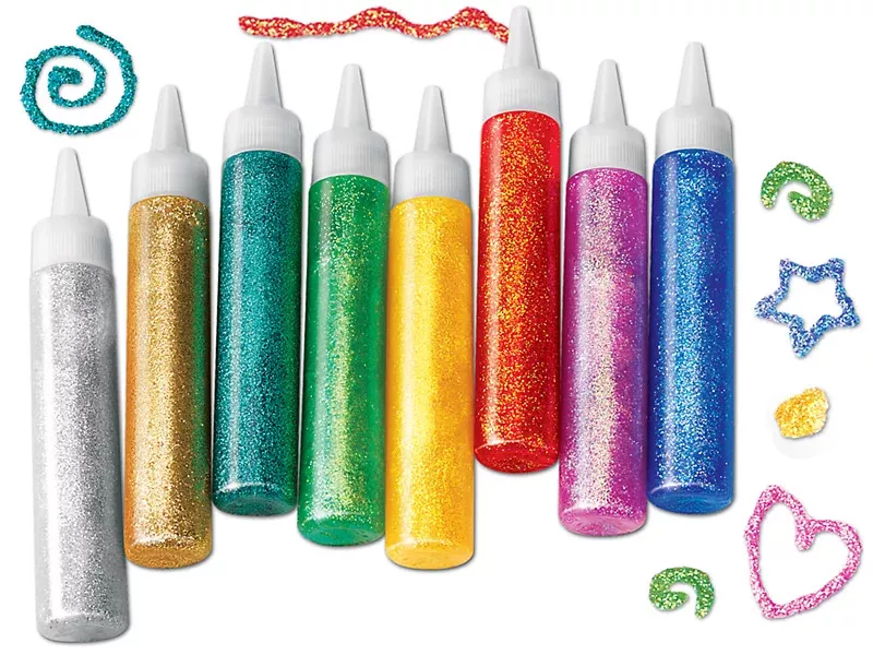 Клей с блестками от торговой марки Lakeshore будет отличным подарком для маленьких фантазеров! При помощи данного продукта можно создать множество привлекательных эффектов. Ребенок сможет выбрать один из 8-ми различных цветов, чтобы добавить нужное количество блесток своим поделкам, открыткам, сувенирам и многому другому.