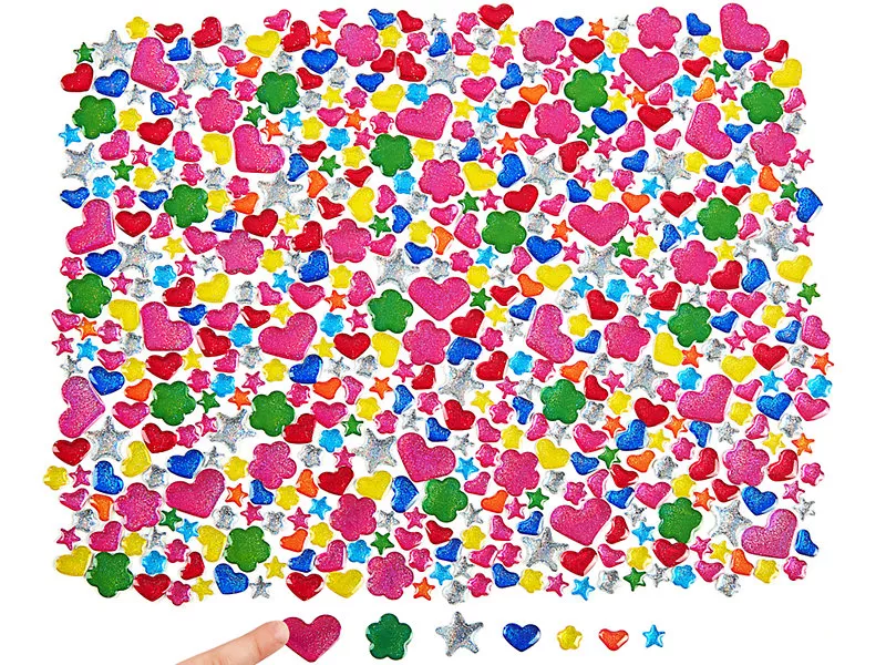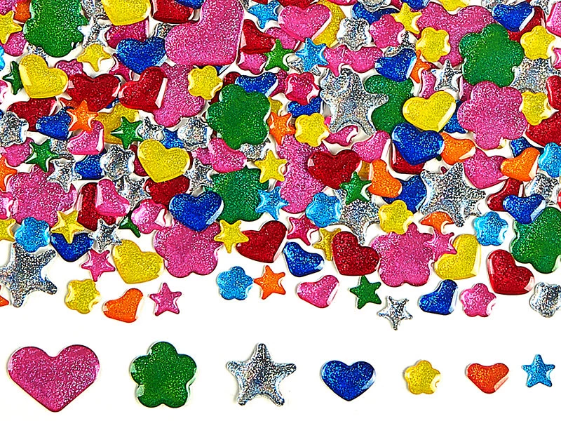 Эти блестящие глиттерные фигурки имеют яркий цвет и красивые дизайн. Их можно использовать в аппликациях, на уроках творчества.