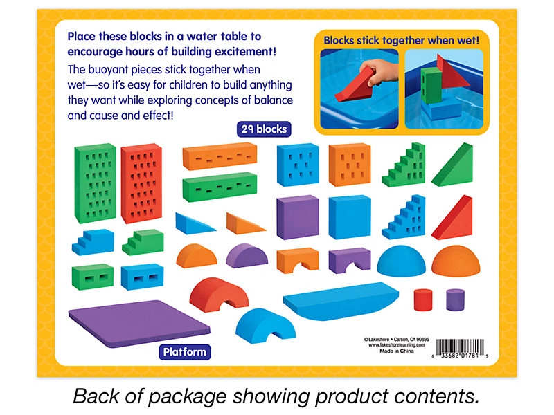 Из этих блоков ребенок сможет построить самый настоящий город на воде, а под воздействием движения воды вся конструкция будет перемещаться (за счет плавучести).