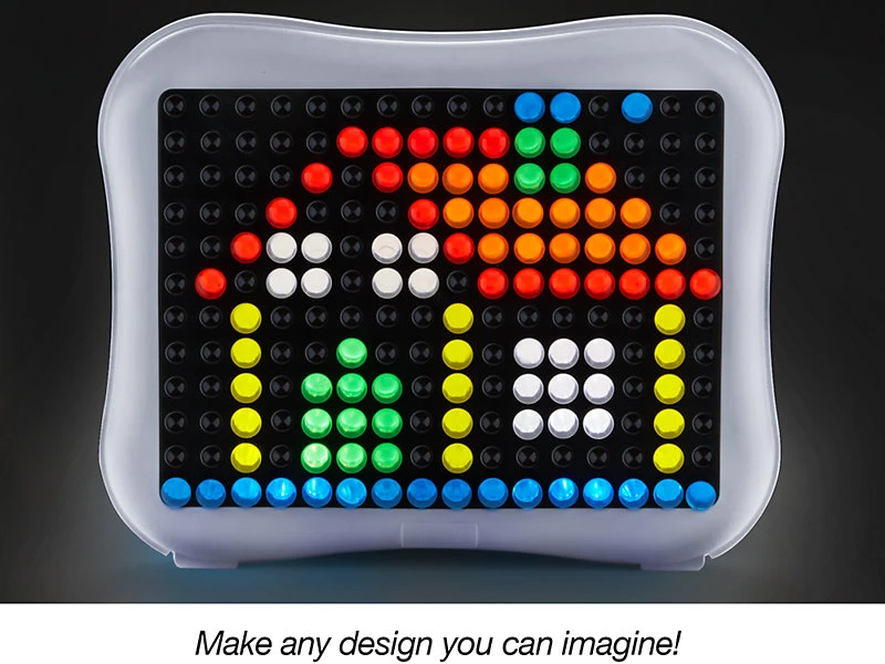 Креативный набор мозаики, которую можно собирать на led панели! Дети используют разноцветные колышки для создания разных узоров. Когда узор собран, включите световую панель, и узор ярко засветится! Создавать узоры можно с включенной панелью, и сразу видеть как создается светящийся узор!