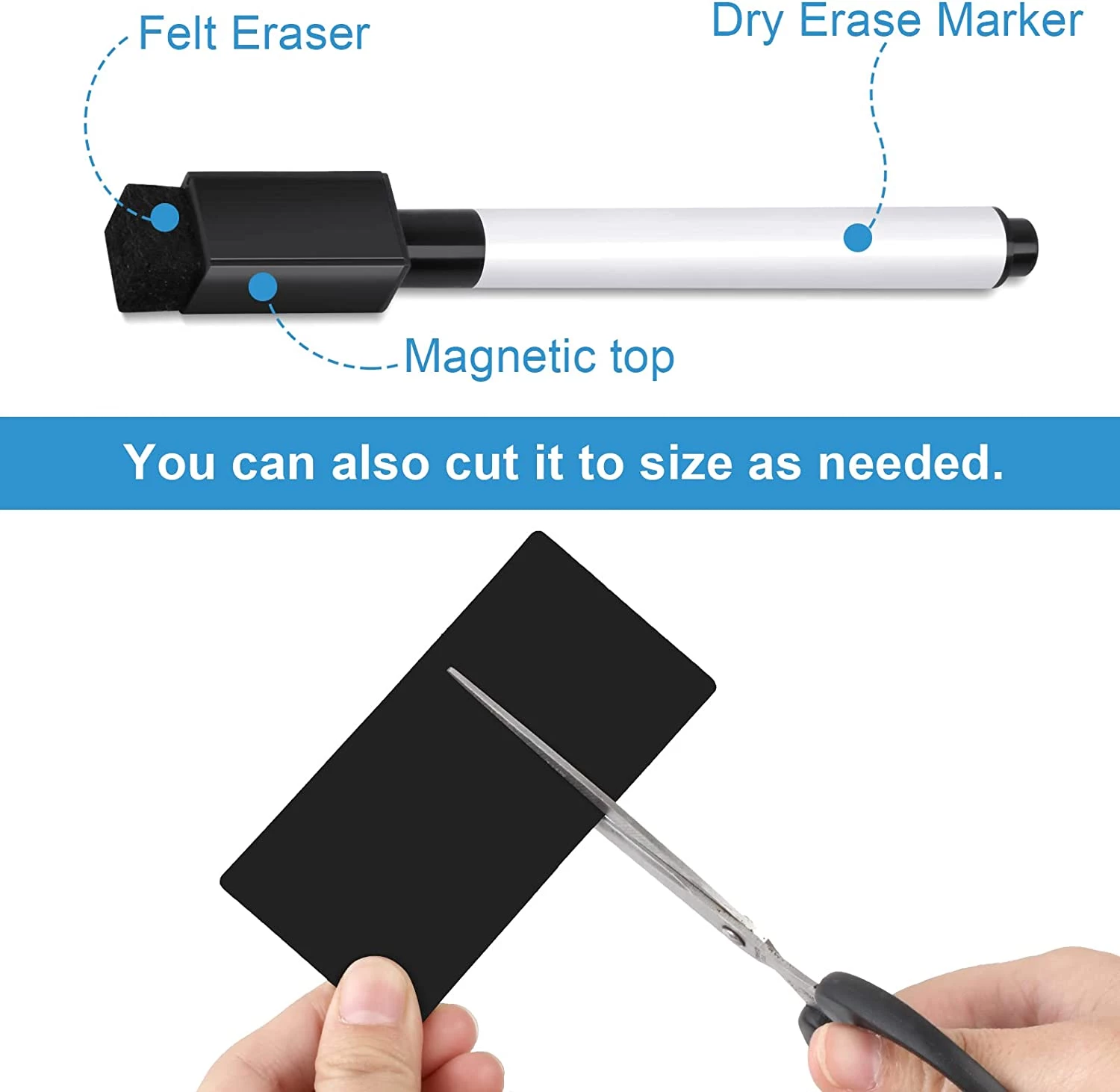 Предлагаемые магнитные карточки произведены из высококачественных материалов и имеют размер 5 x 10 см. Кроме того, вы можете воспользоваться ножницами, чтобы вырезать магнитные стикеры нужных вам размеров и форм. Это не нарушит магнитное покрытие изделий.