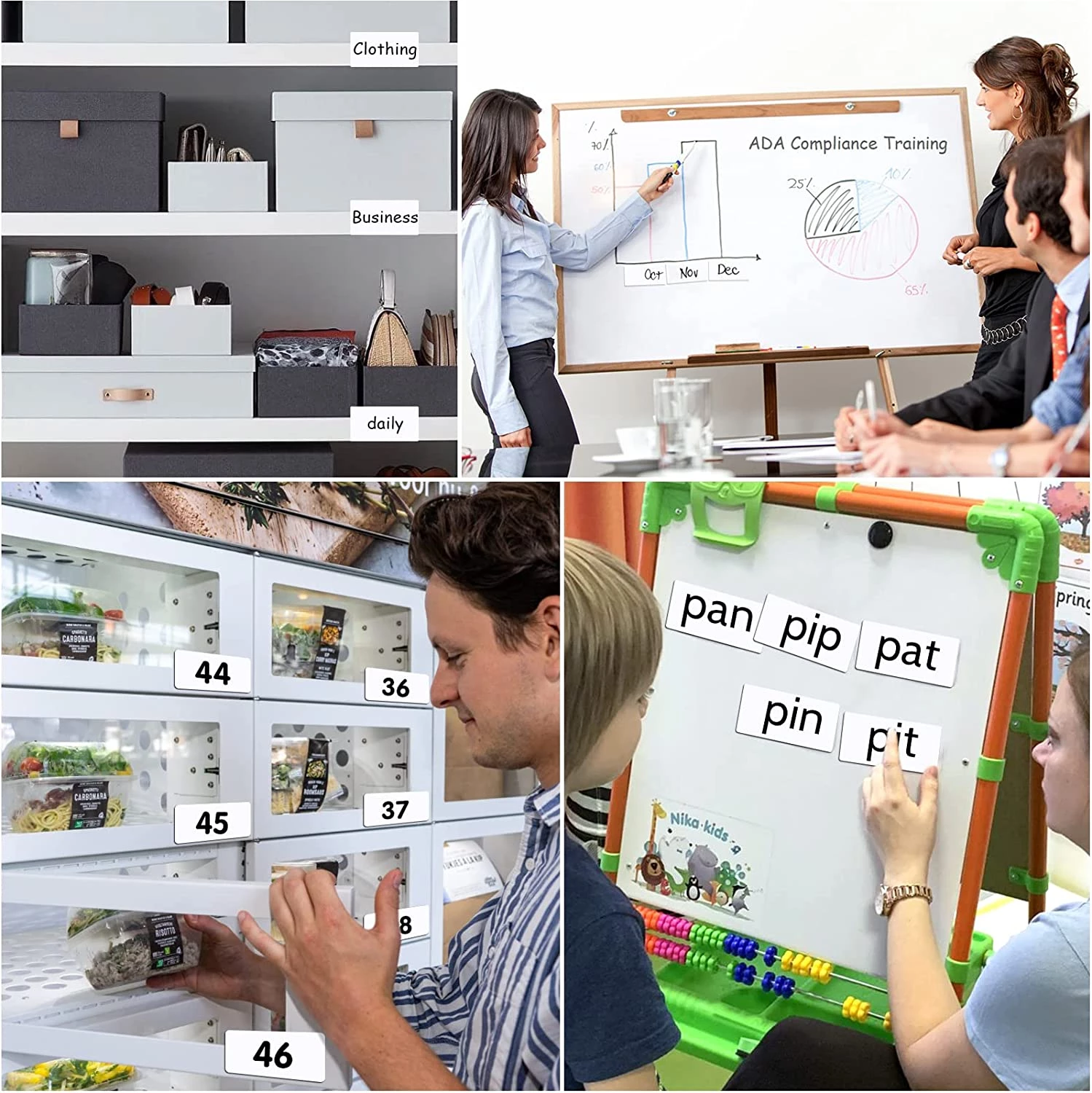 Используйте представленные карточки в качестве магнитных этикеток для металлических стеллажей, магнитов для маркерных досок, магнитов для бюллетеней, гибких магнитов для бейджей. Надписи, нанесенные на карточки, легко стираются, не оставляя следов, разводов или пятен.