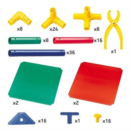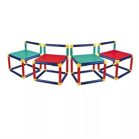 Из набора можно собрать 4 стула. Безопасные и прочные. Запатентованная система соединения деталей, обеспечивающая легкую сборку и разборку. Элементы из прочного ABC-пластика. Может использоваться для оформления класса по методике Монтессори.