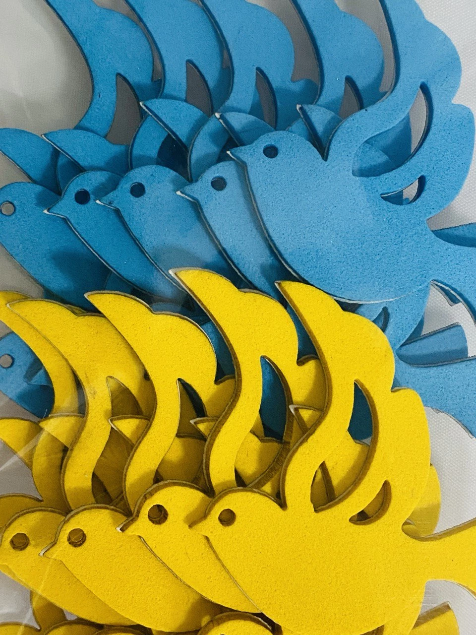 Ваш ребенок любит заниматься творчеством? В таком случае порадуйте его полезным и интересным подарком, набором наклеек из фоамирана «Птички». Он включает в себя 20 качественных наклеек, выполненных в синем и желтом цветах. Они станут прекрасным дополнением к творческим работам юных рукодельников. Такими наклейками можно украшать аппликации, оформлять те или иные предметы и т.д.