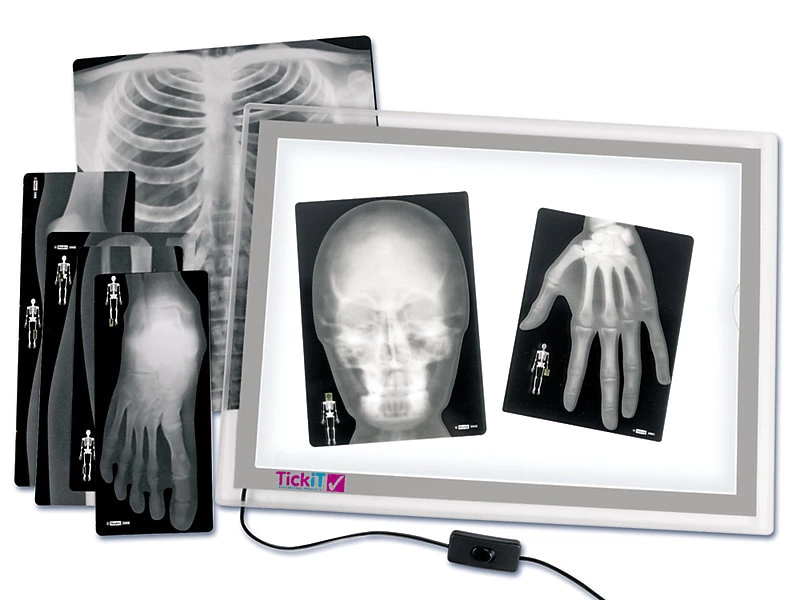 Прекрасный обучающий материал наглядно показывает строение человеческого скелета. На этих 18 рентген снимках изображены разные части тела человека, и маленькая миниатюрка, чтобы, было понятно какая это часть тела. Идеально подходят для изучения анатомии человека. Если собрать все части рентгена, то можно увидеть полноценный скелет человека ростом 153 см. Хорошее и высокое качество материала, не позволит рентгену порваться, и будет служить в обучении детей многое время.