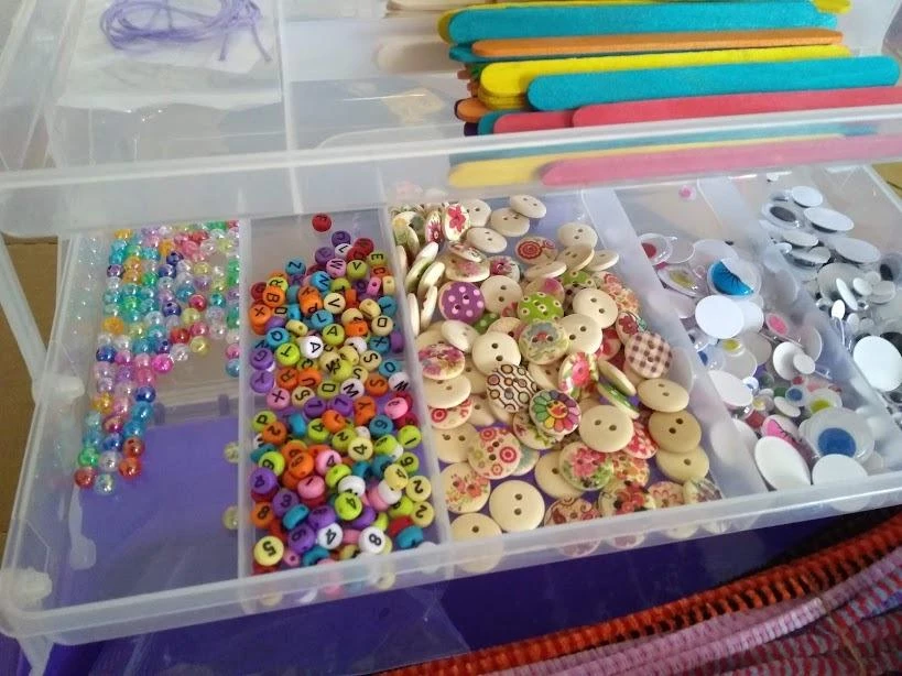 Этот огромный набор станет отличным подарком для ребенка, который любит создавать своими руками различные поделки и украшения. Здесь есть множество бусин, палочек для мороженного, наклеек, стикеров, пуговиц, перьев, эластичных жгутов и много другого. В комплекте прилагаются ножницы и клей, а все материалы представлены в удобном коробе с различными отсеками для удобства транспортировки и хранения. Ребенок сможет развить свои творческие навыки и мелкую моторику.