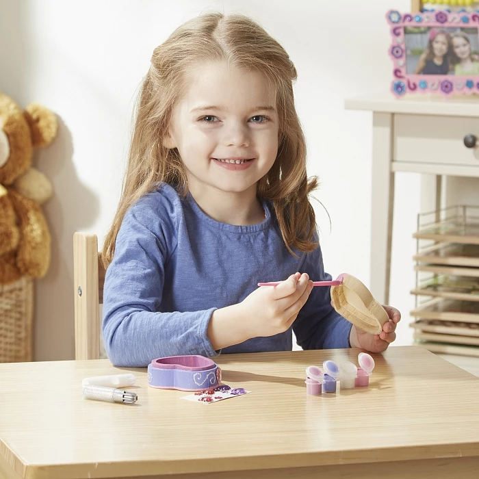 Ищите стильное и оригинальное место для хранения модных аксессуаров? Тогда обратите внимание на этот наборчик от Melissa & Doug, включающий прочную деревянную шкатулку-сердце, блестки, клей ПВА, разноцветные наклейки с драгоценными камнями, 4 баночки с краской и кисточку. Все эти принадлежности и инструменты позволят вам добавить свои уникальные индивидуальные штрихи, чтобы создать оригинальную поделку, вдохновленную вашими идеями и воображением. Идеальное занятие для семейного досуга и дождливых дней!