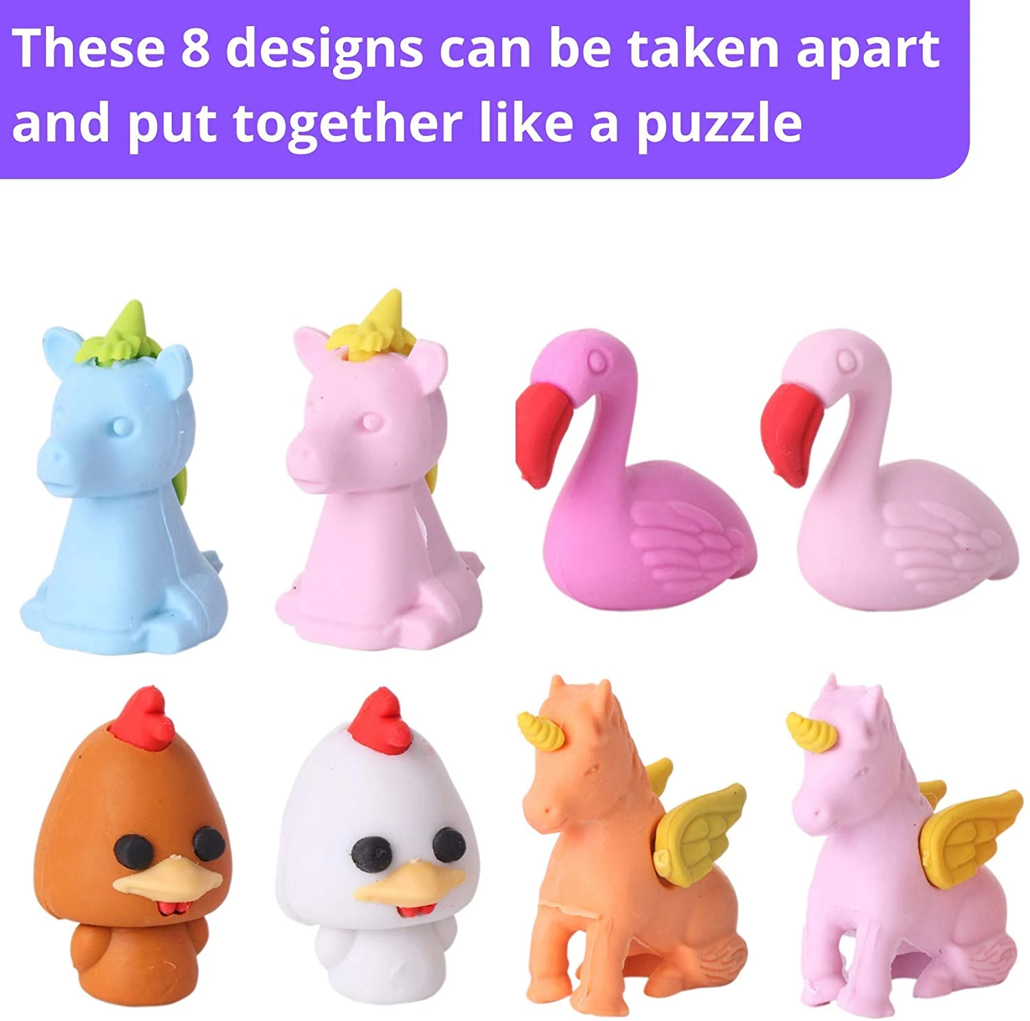 Mr. Pen- Animal Topper Erasers, 22 Pack, 8 Pack Take Apart Animal Erasers, Pencil Toppers